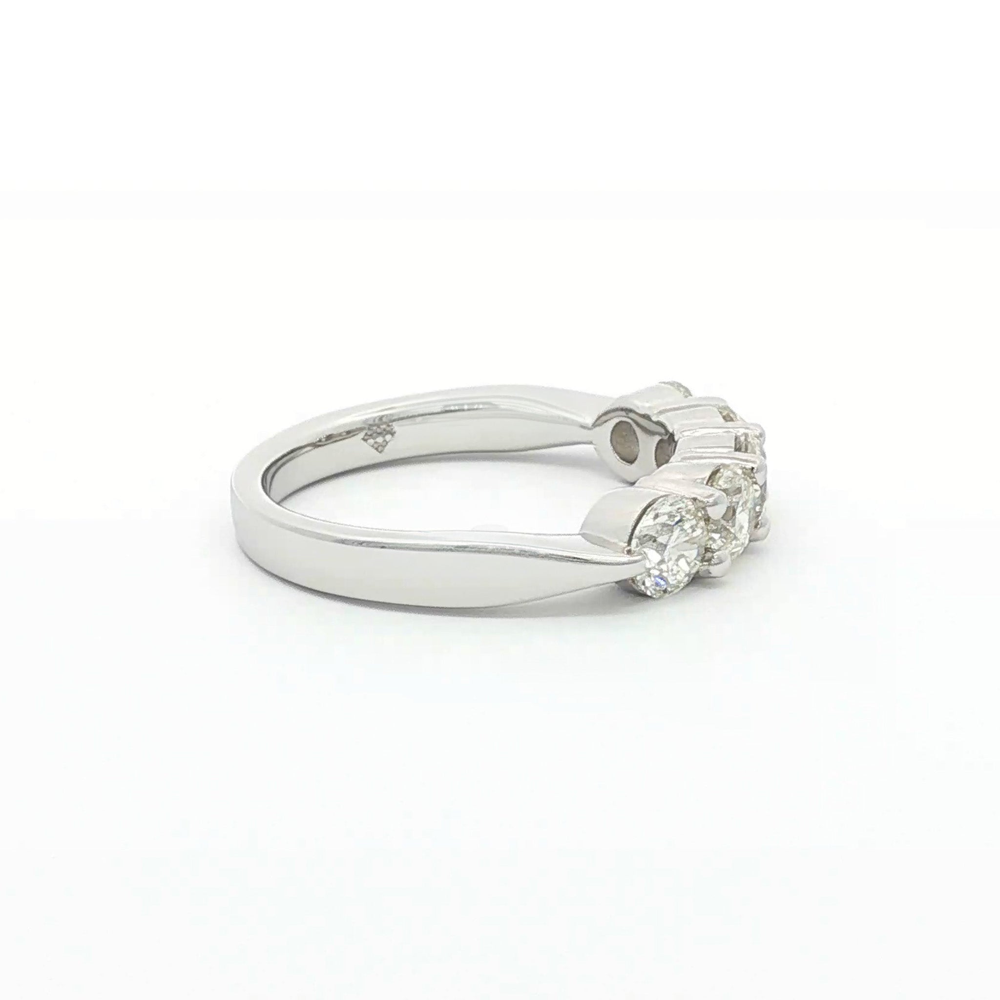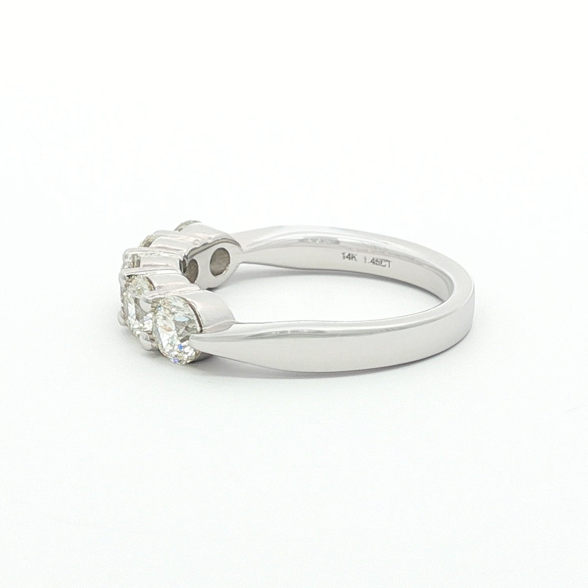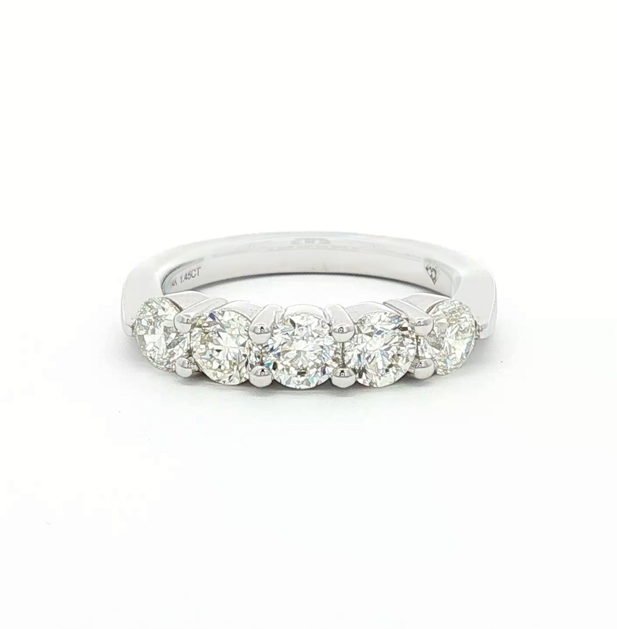 14 Karat Gold Approximately 1.50 Carat Total Weight Slightly Tapered Round Brilliant Diamond Shared Prong 5 Stone Band. Stones are G-H Color, SI Clarity. Available in Yellow and White Gold. Total weight may vary +/-.