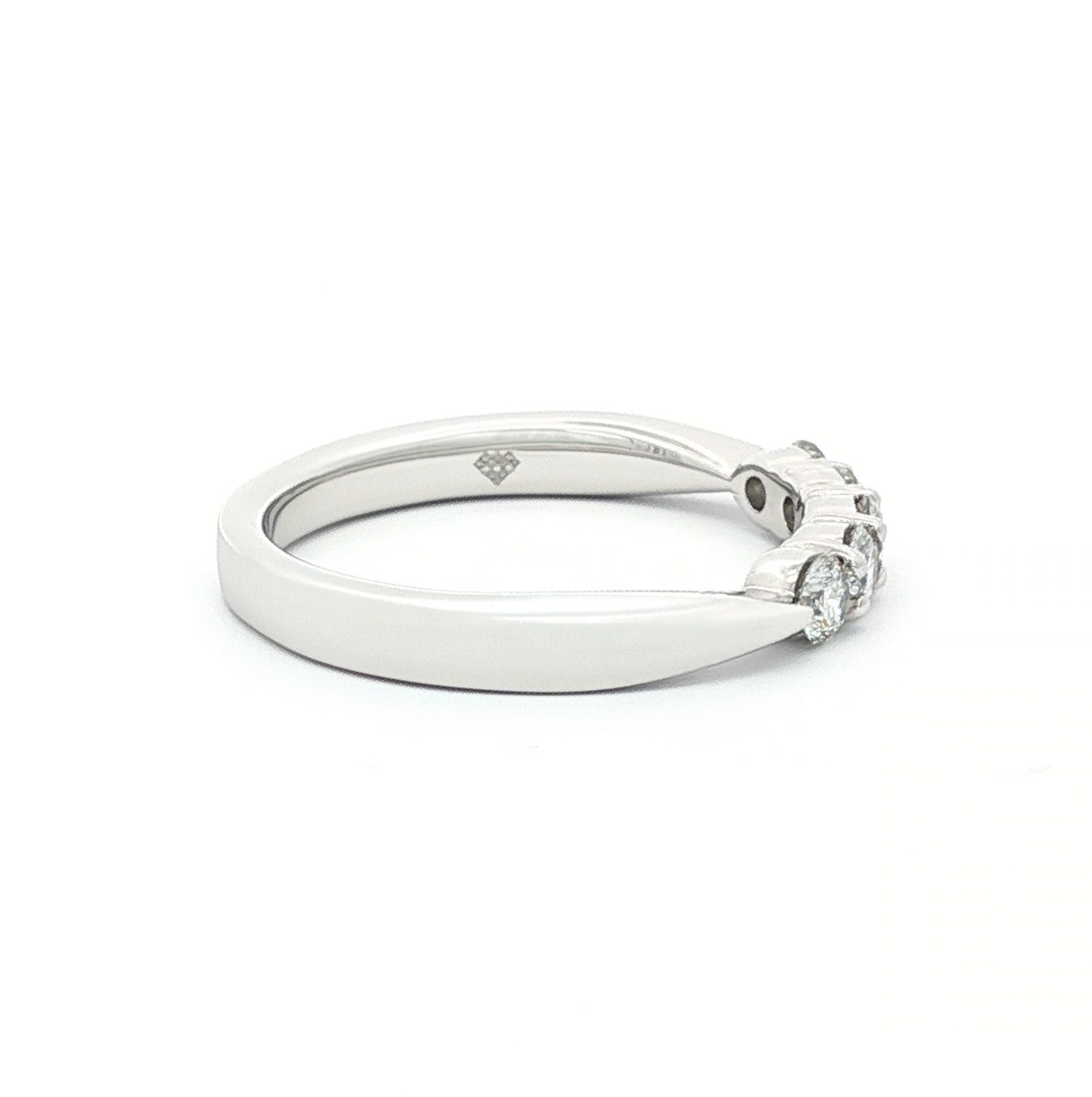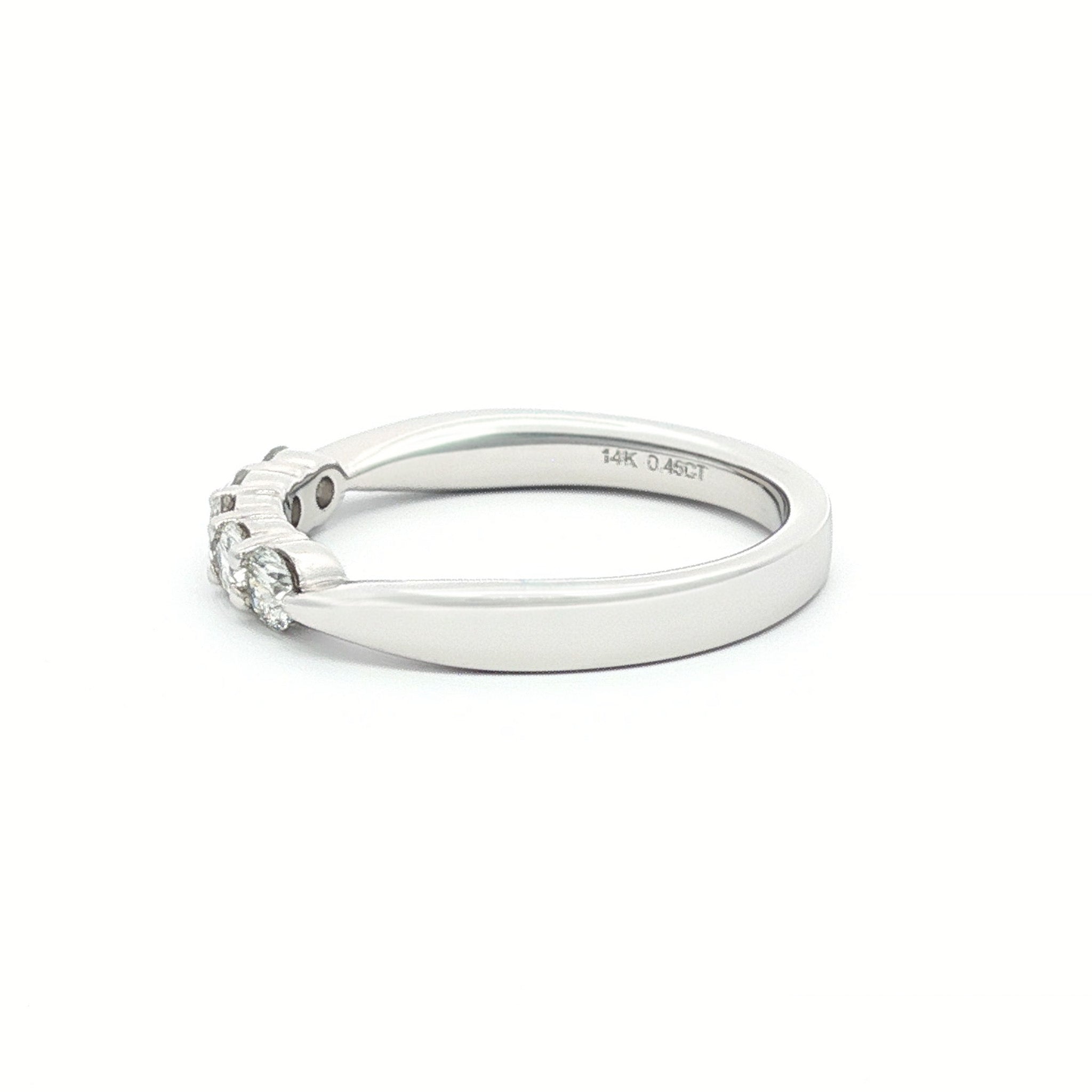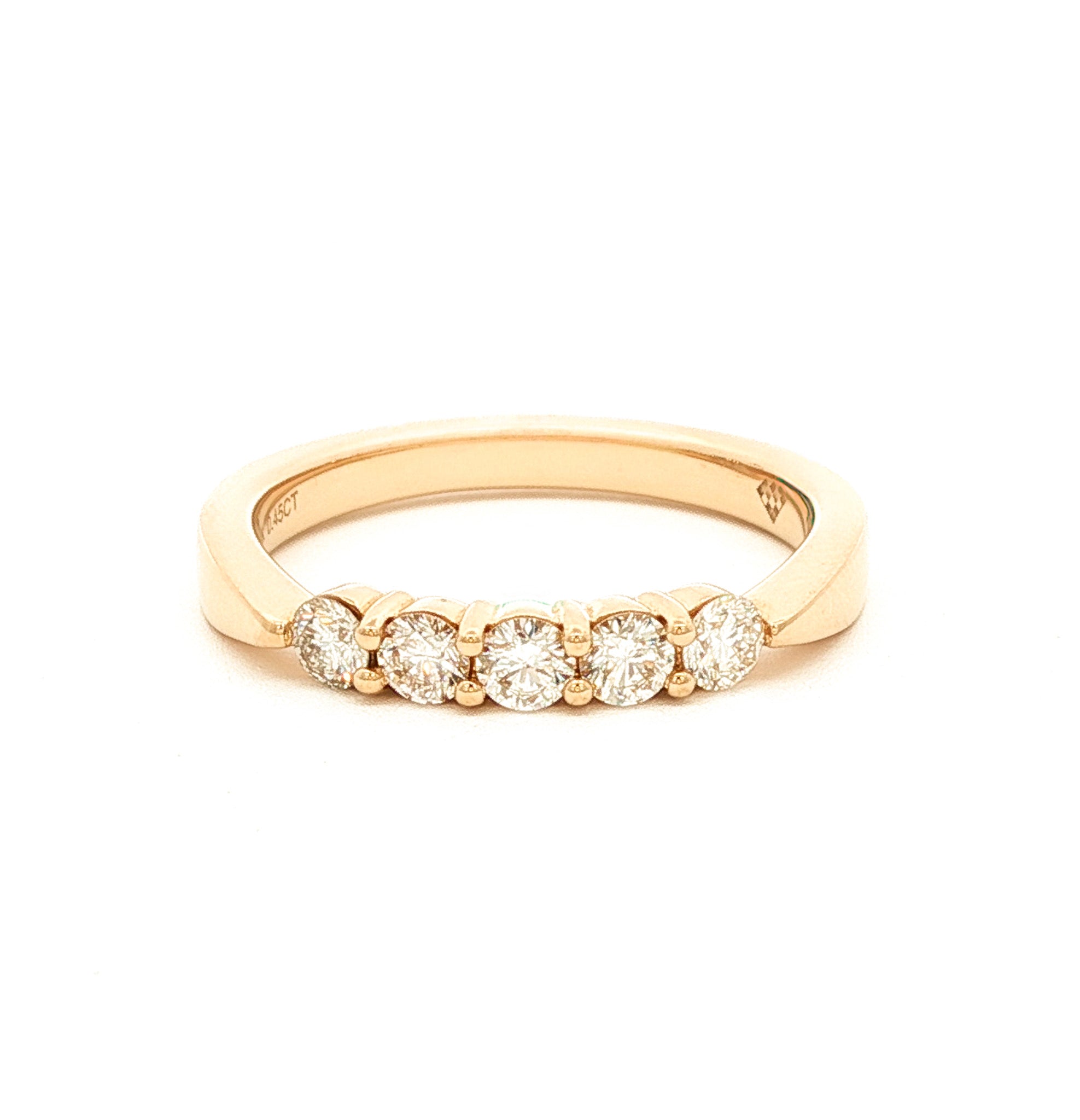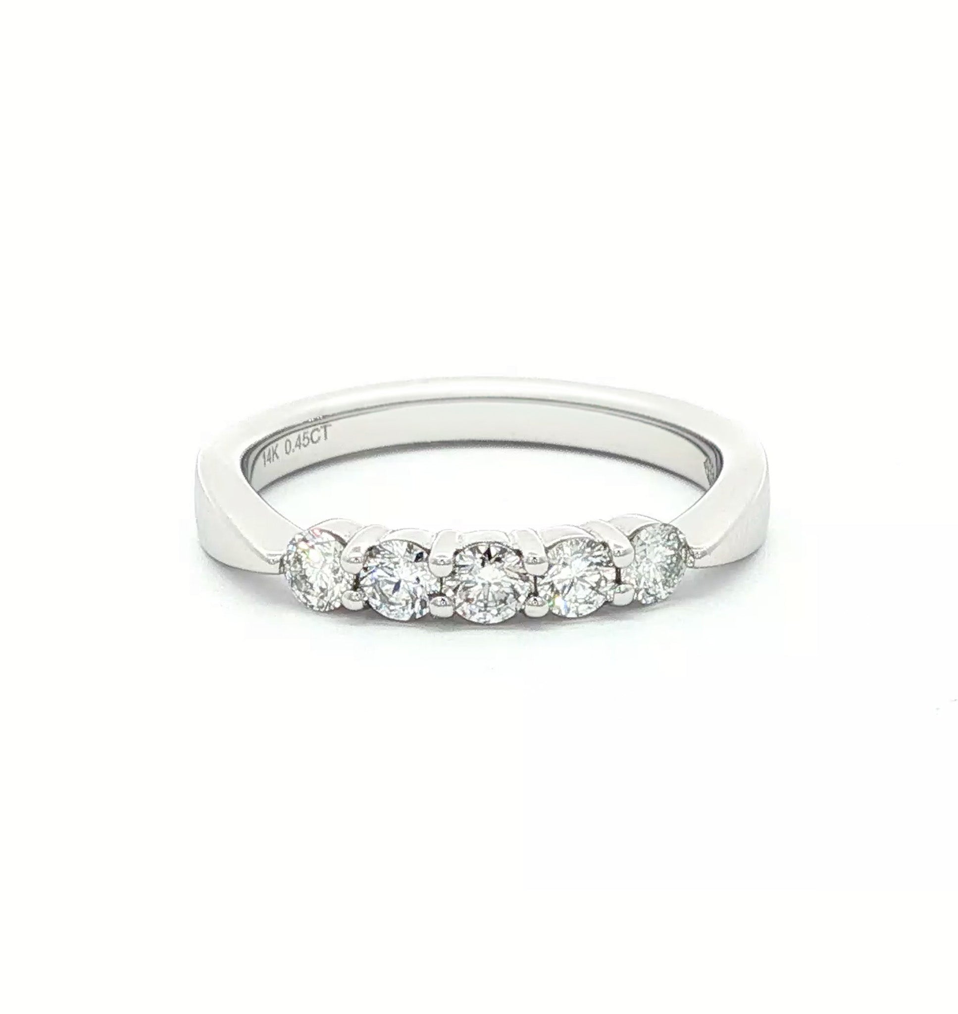 14 Karat Gold Approximately .50 Carat Total Weight Slightly Tapered Round Brilliant Diamond Shared Prong 5 Stone Band. Stones are G-H Color, SI Clarity. Available in Yellow and White Gold. Total weight may vary +/-.