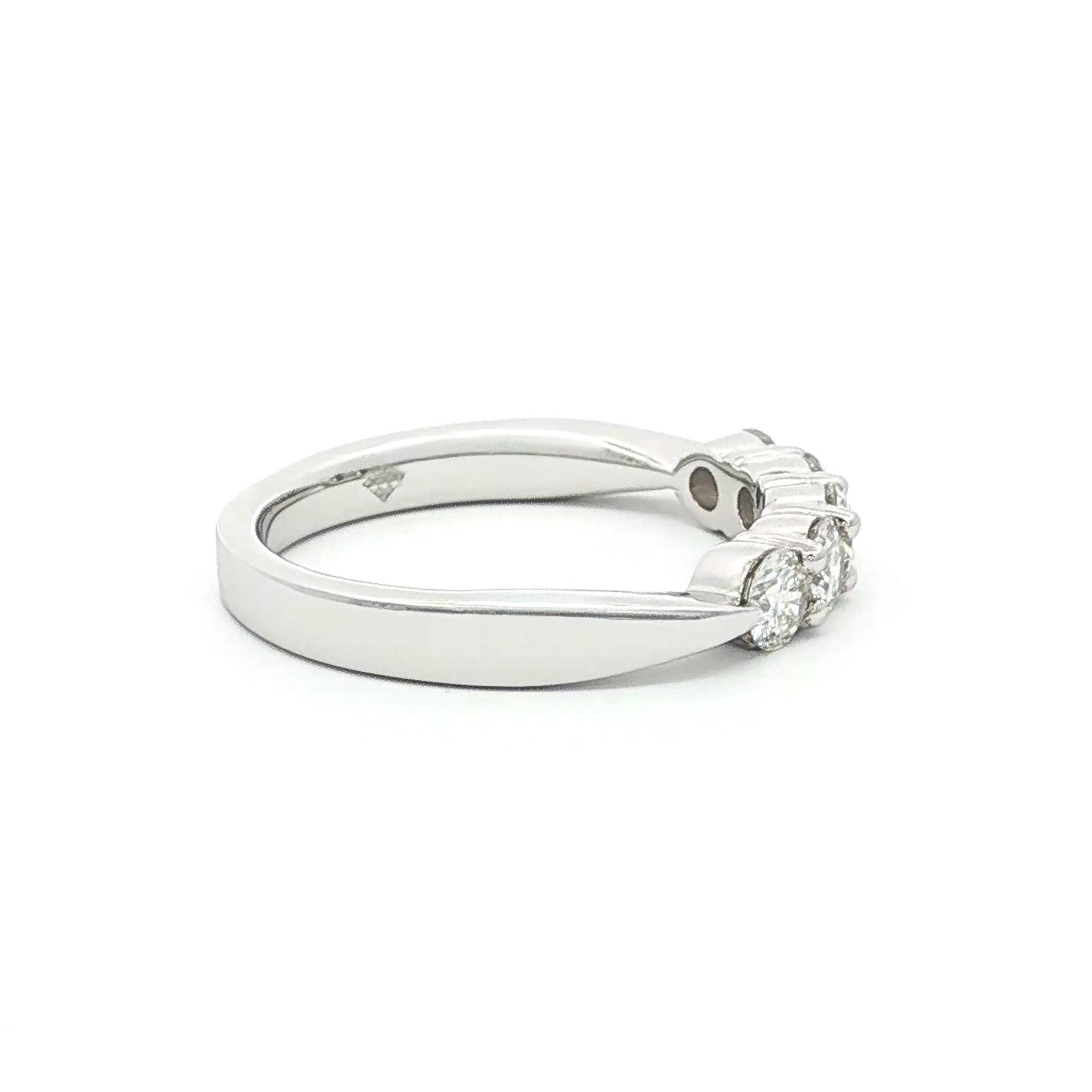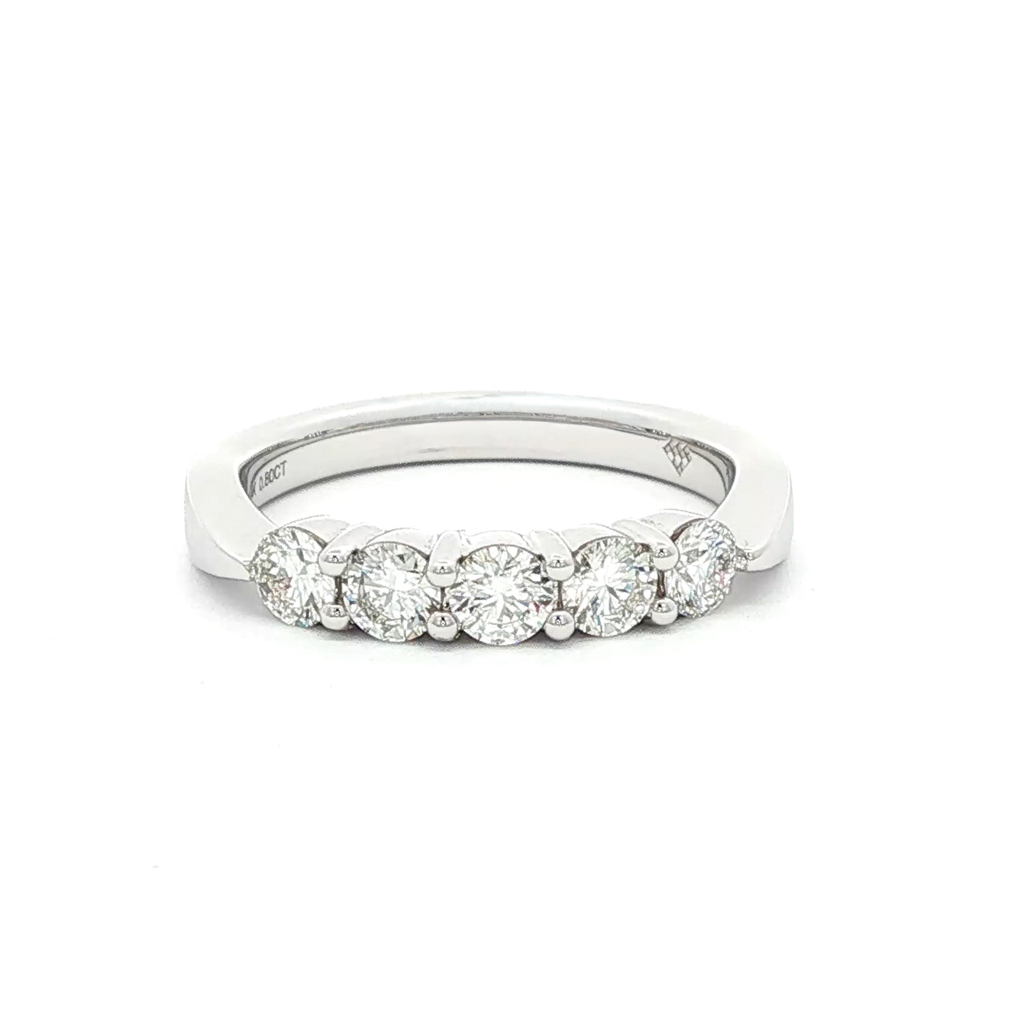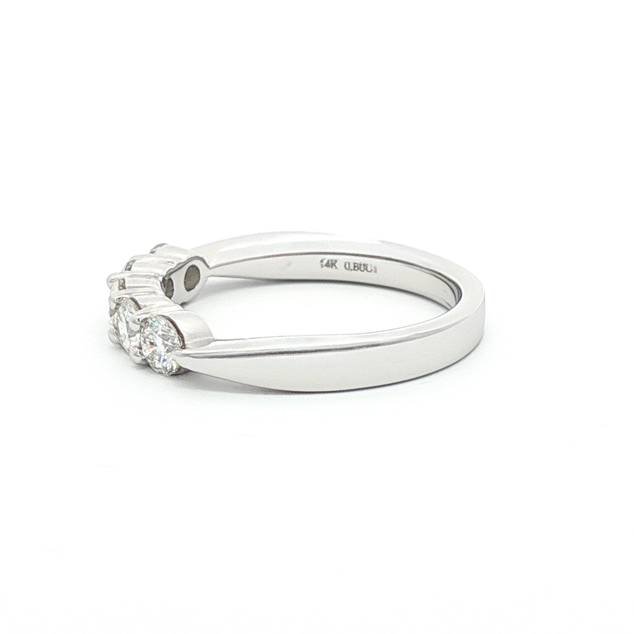 14 Karat Gold Approximately .75 Carat Total Weight Slightly Tapered Round Brilliant Diamond Shared Prong 5 Stone Band. Stones are G-H Color, SI Clarity. Available in Yellow and White Gold. Total weight may vary +/-.