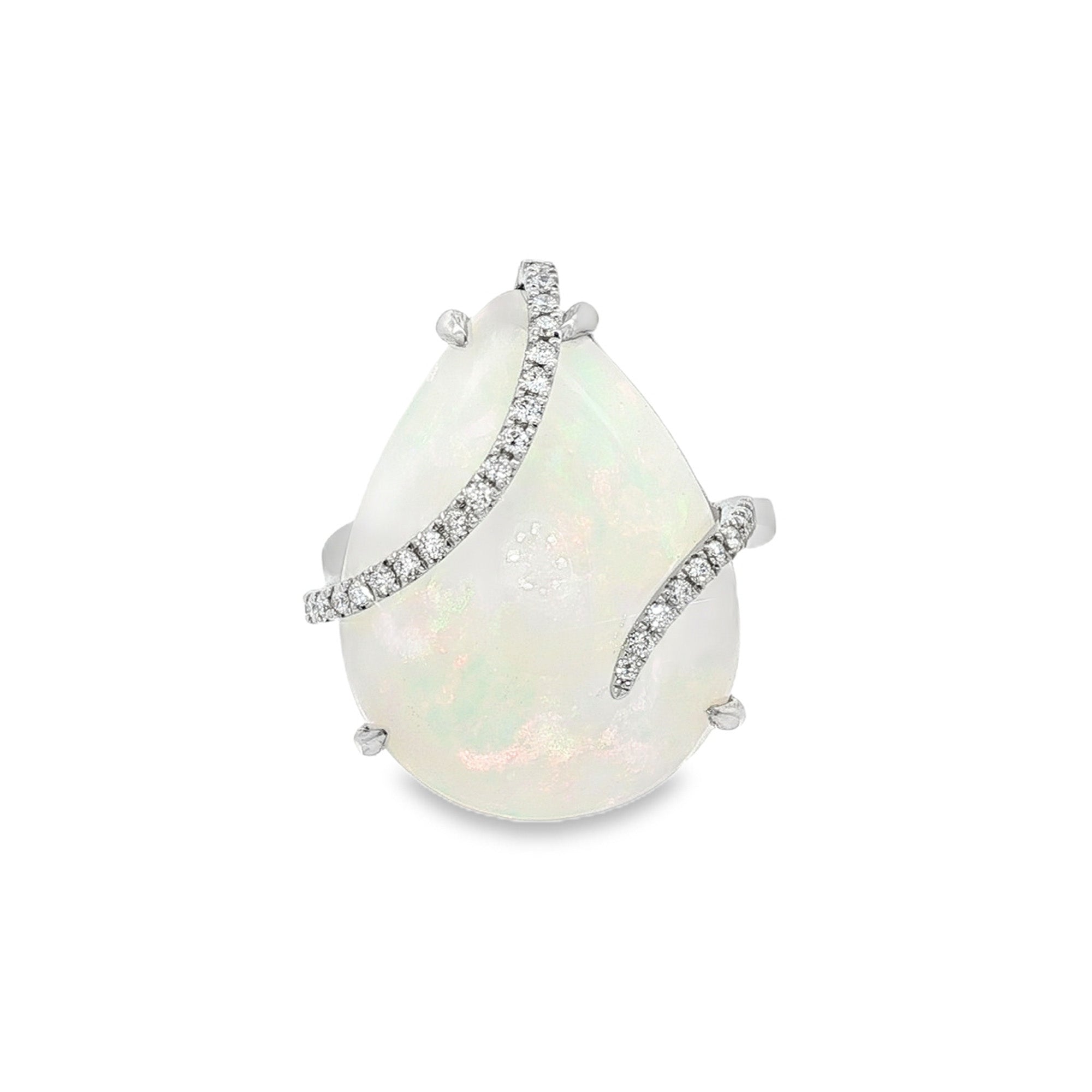 12.53 ct Ethiopian Opal & .15 ctw Diamond 14kt White Gold Ring