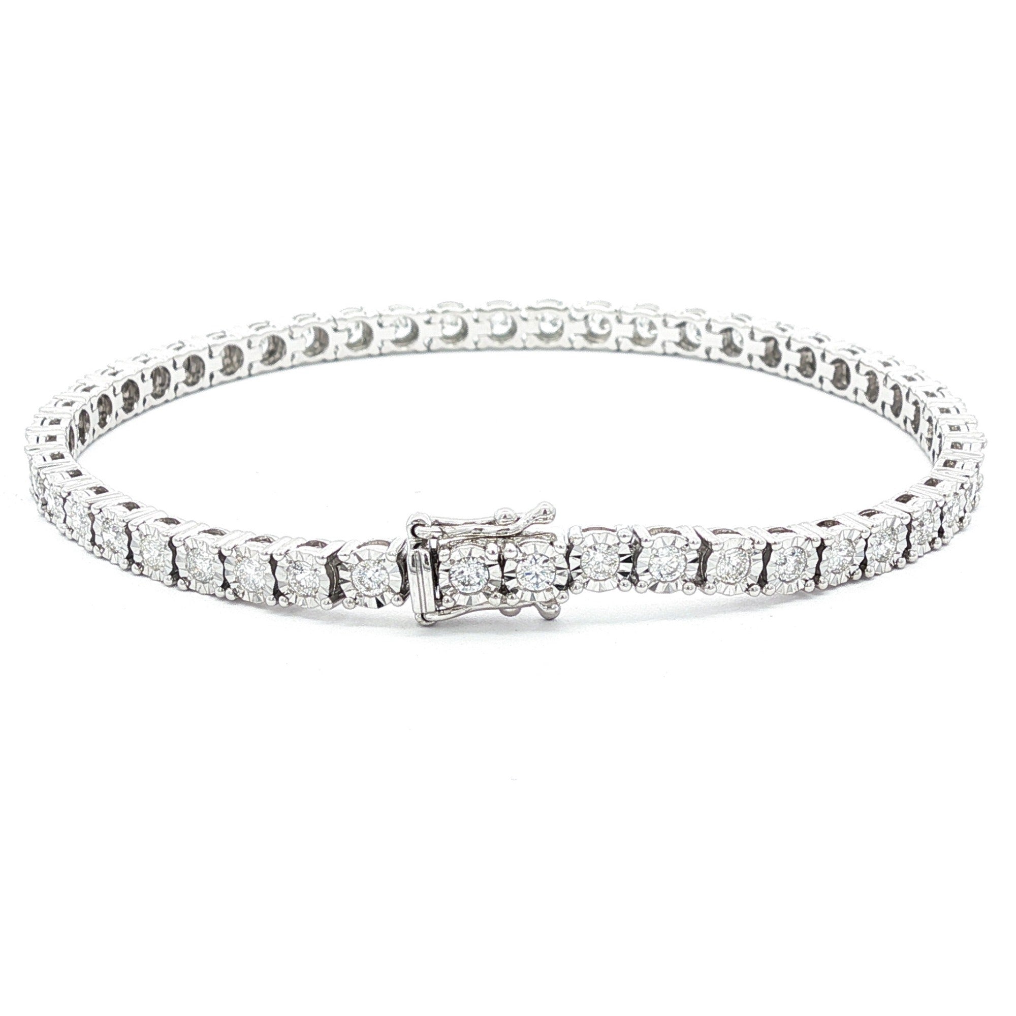 14K WHITE GOLD 2 CTW ILLUSION SET DIAMOND TENNIS BRACELET - 7"