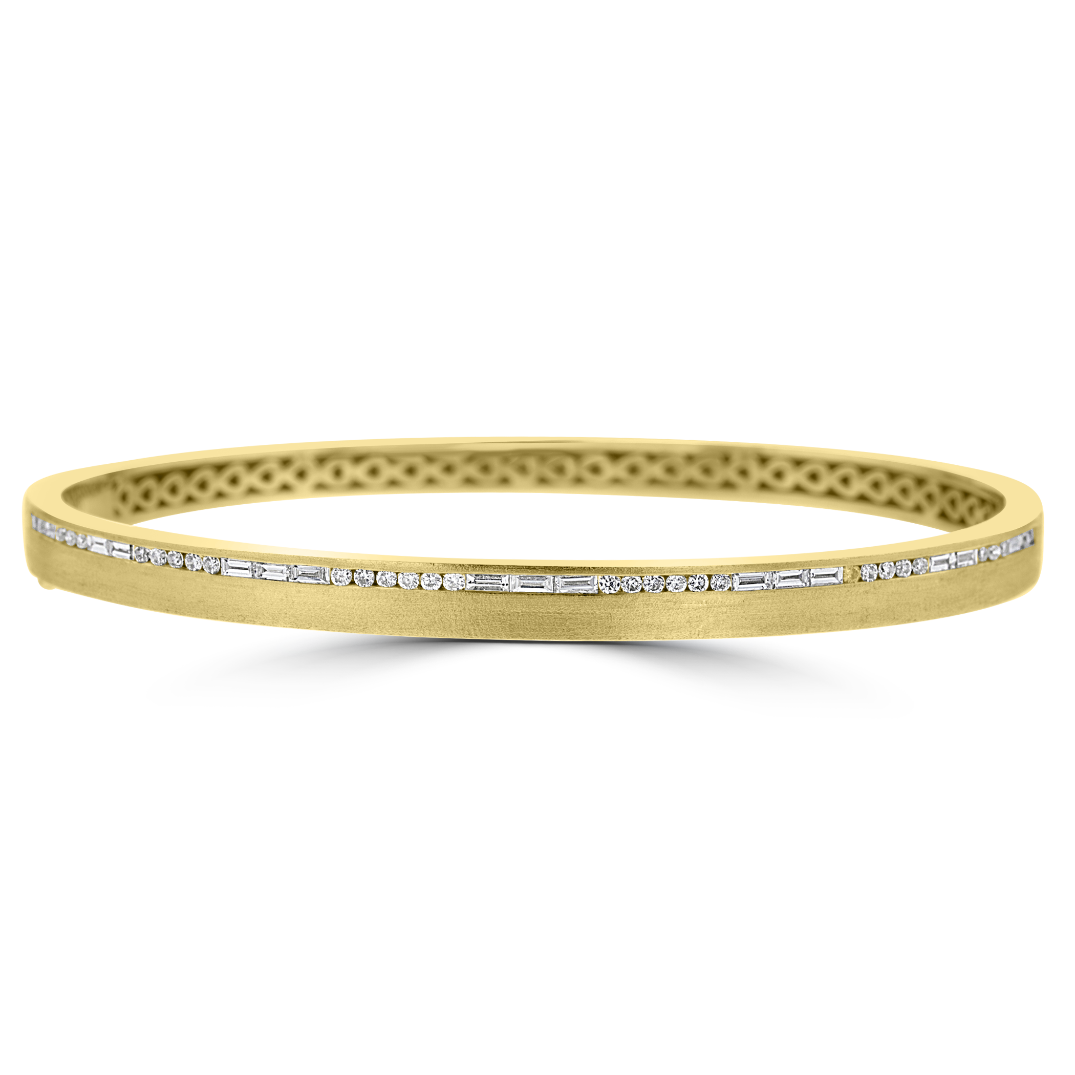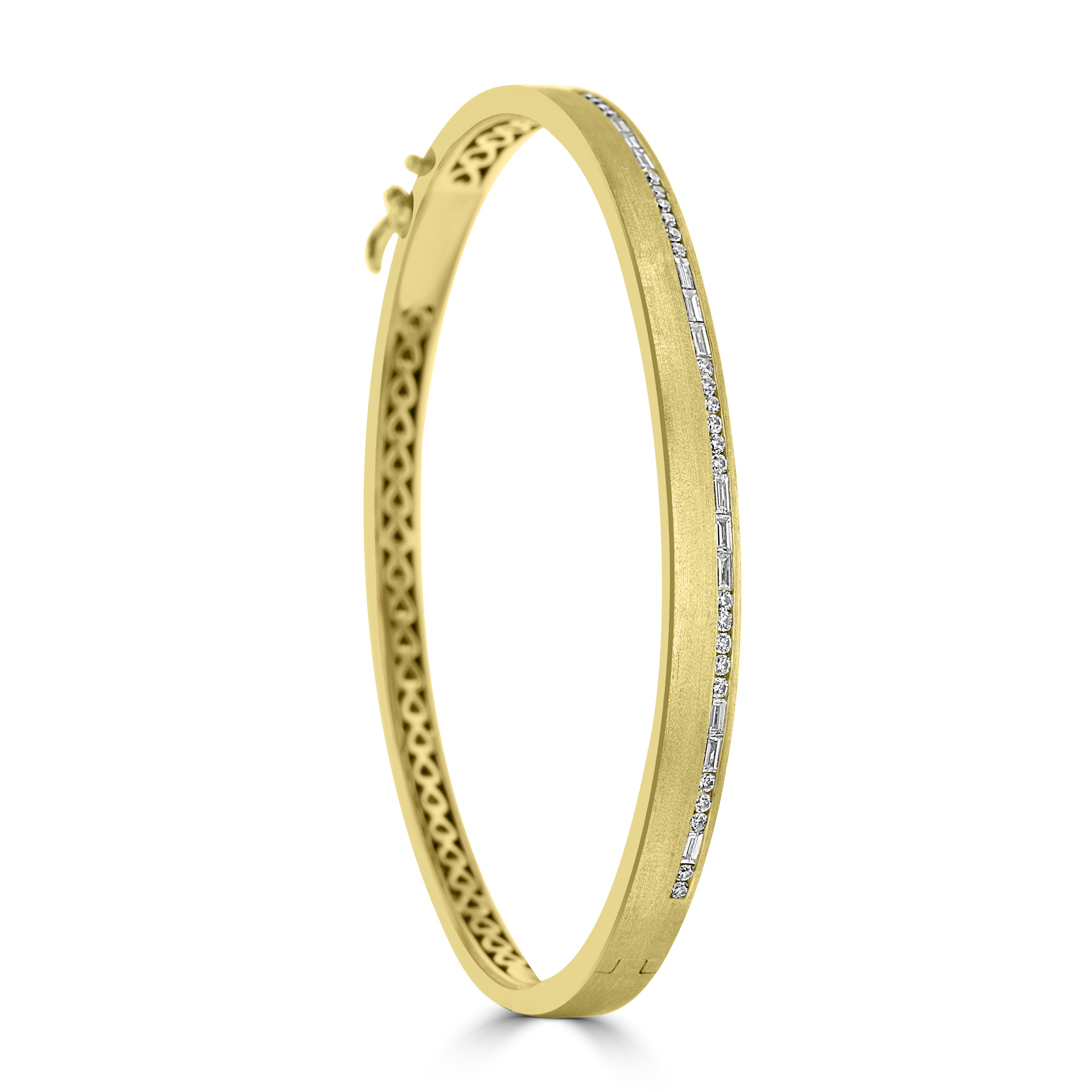 14KT YELLOW GOLD 0.62CTW DIAMOND SATIN BANGLE BRACELET
