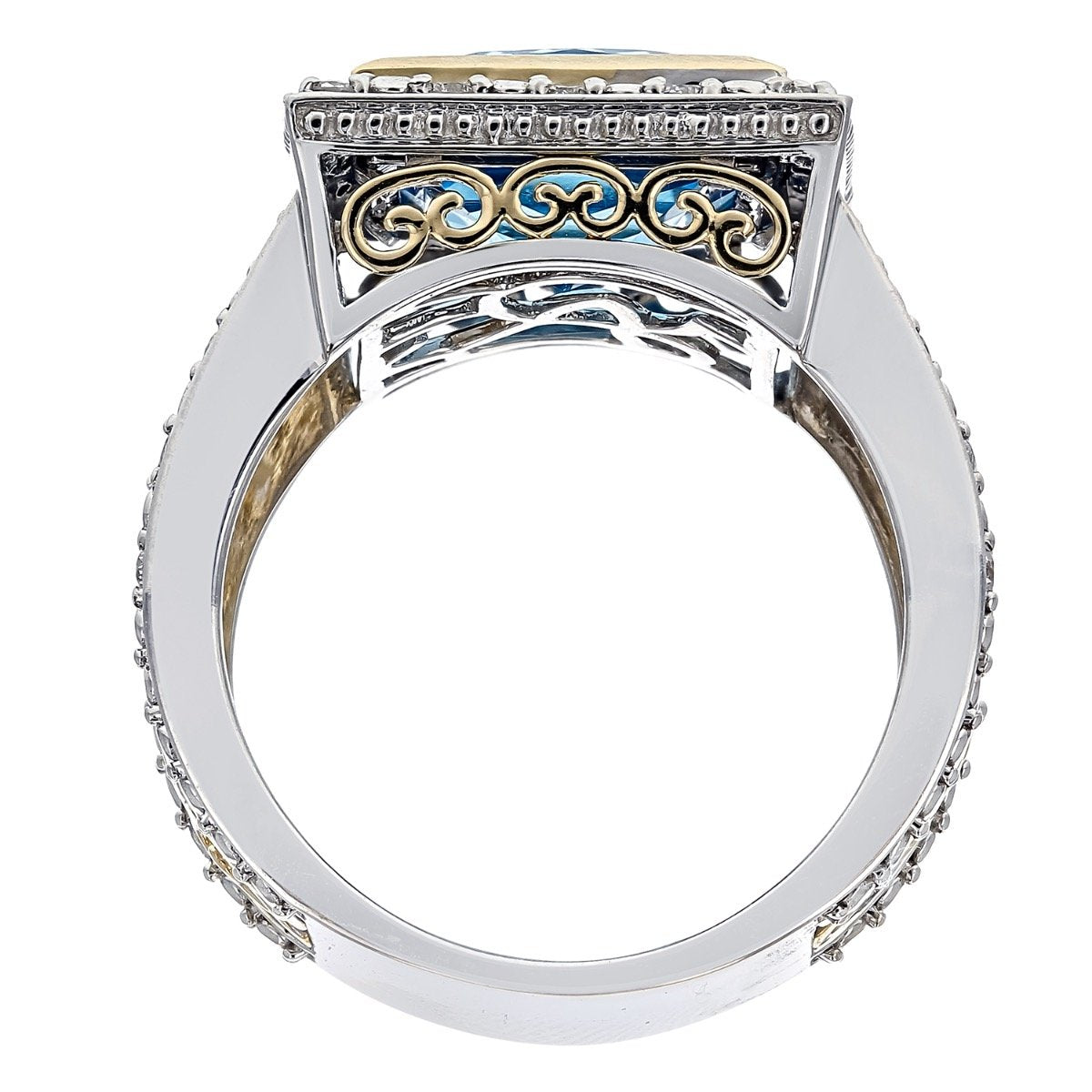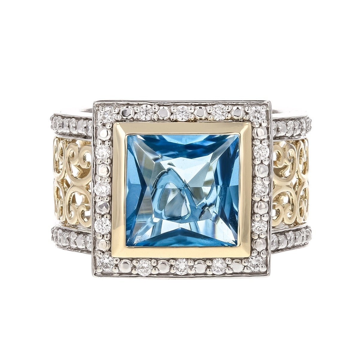 14KT GOLD PRINCESS CUT GEMSTONE & DIAMOND HALO RING