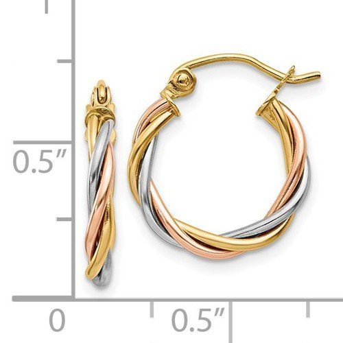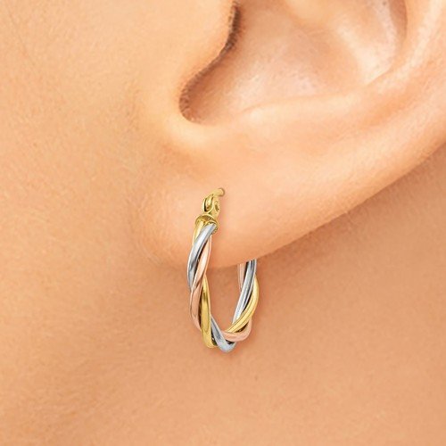 14KT TRI GOLD COLORES TWIST HOOP EARINGS