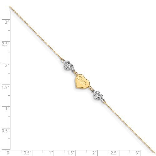 14KT TWO-TONE GOLD PUFFED HEARTS "MOM" ANKLET 9-10"