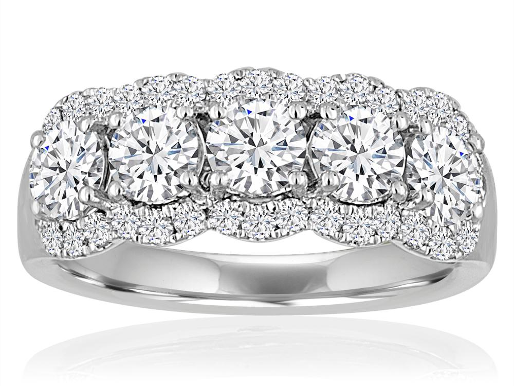 14KT WHITE GOLD .95 CTW DIAMOND 5 STONE HALO BAND