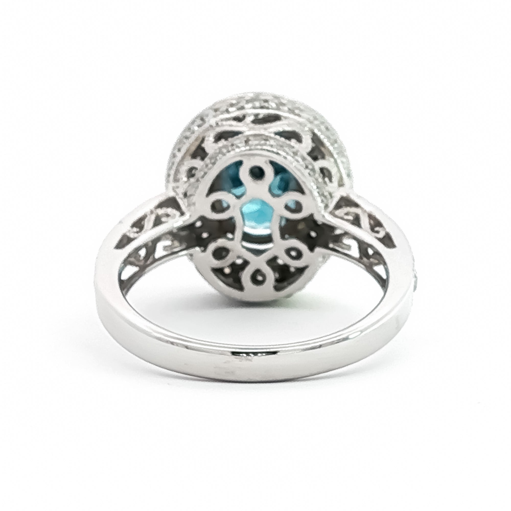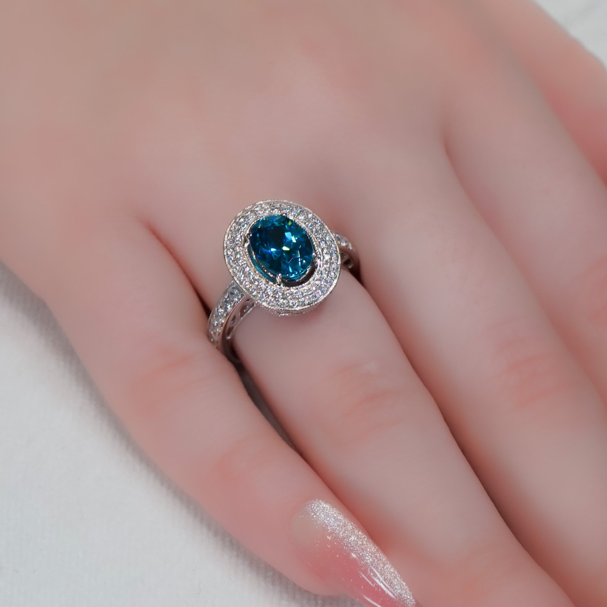 14kt White Gold & 4.00 ct Oval Blue Zircon with 1.00 ctw Diamond Halo Ring