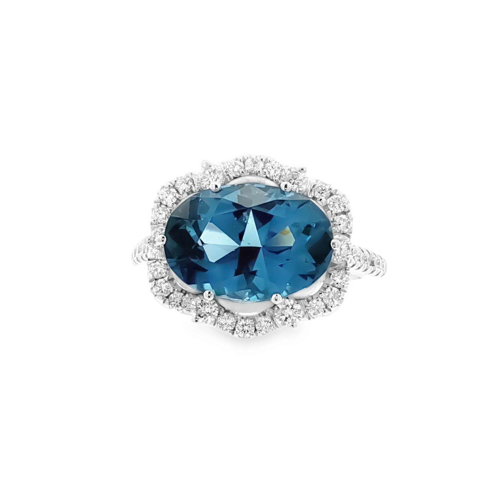 14kt White Gold & 5.08 ct Oval Blue Topaz with .63 ctw Diamond Scalloped Halo Ring