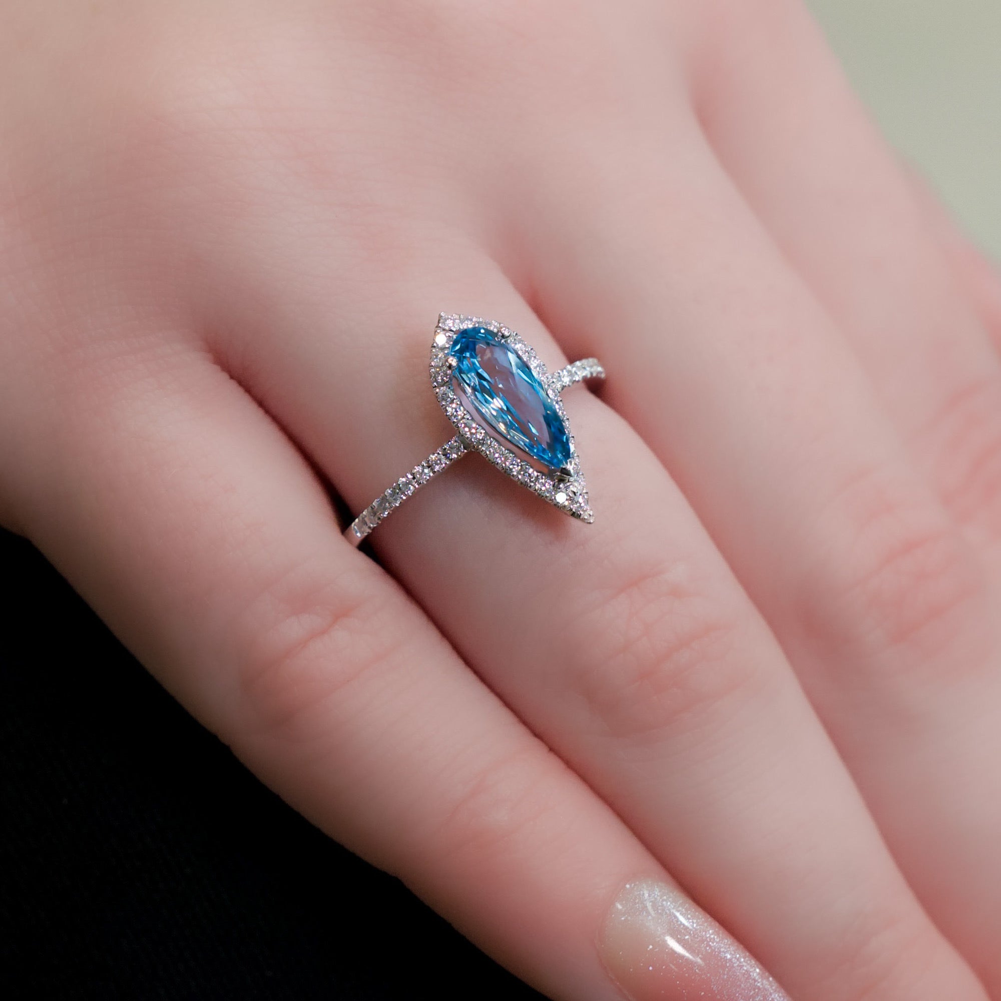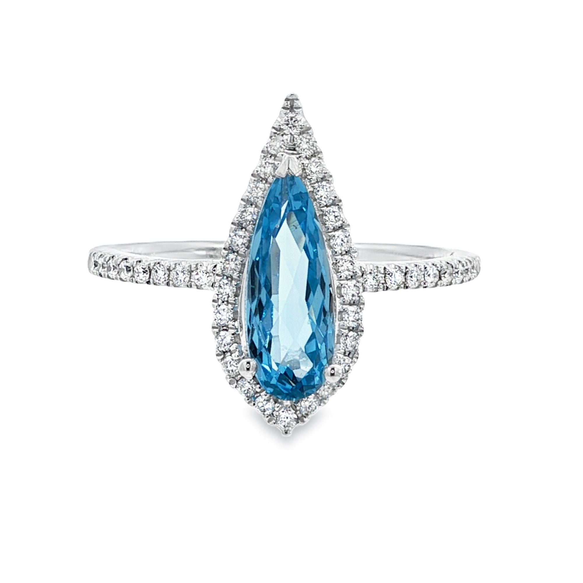 14kt White Gold & .80 ct Pear Shaped Blue Topaz with .21 ctw Diamond Halo Ring