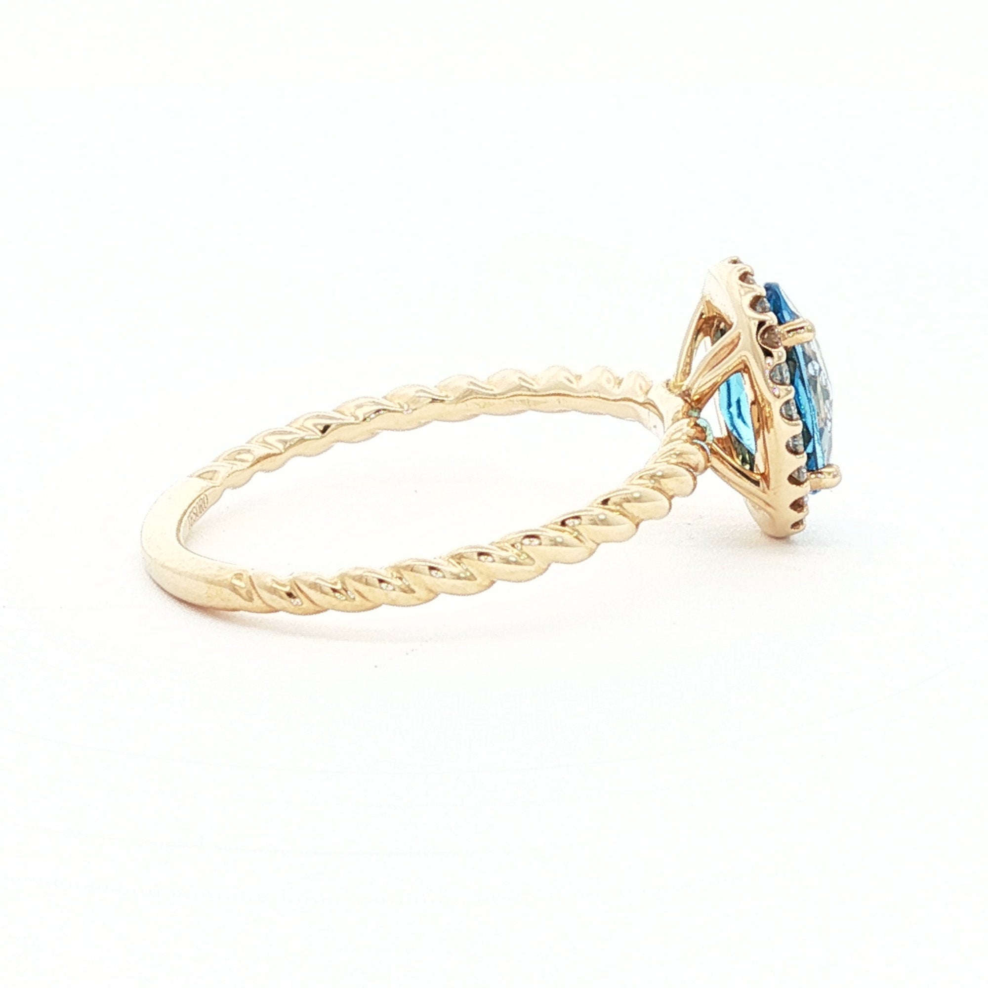 14kt Yellow Gold & 1.60 ct Oval Blue Topaz with .10 ctw Diamond Halo Ring