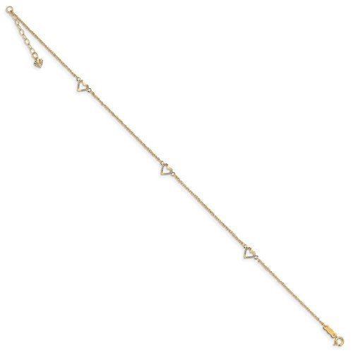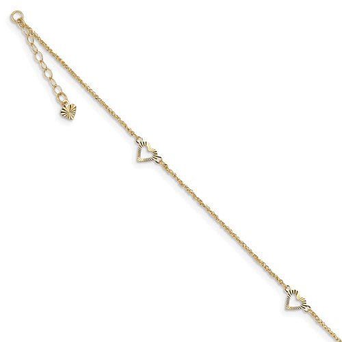 14KT YELLOW GOLD DIAMOND CUT HEART ADJUSTABLE ANKLET 9-10"