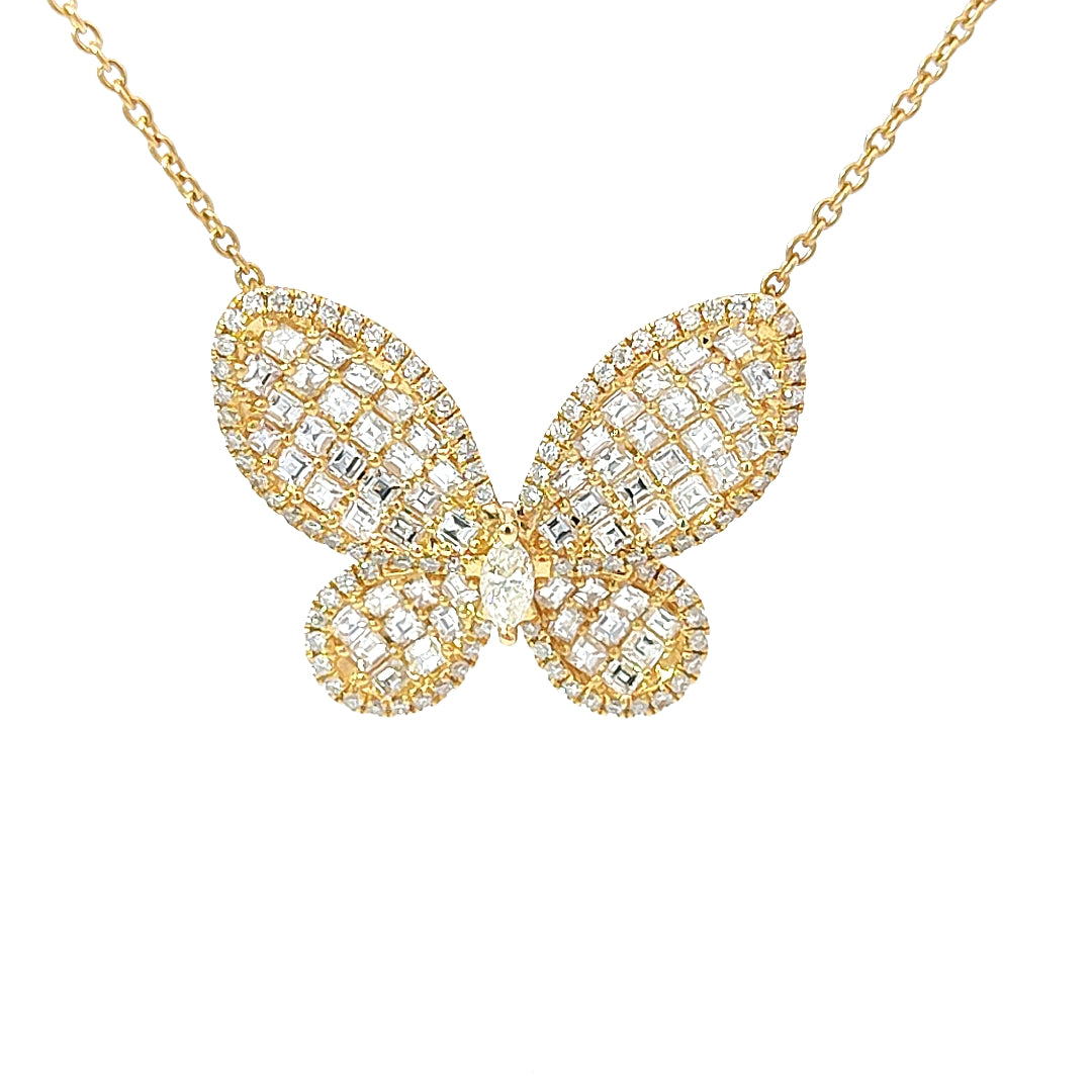 18 KARAT YELLOW GOLD 3.48 CARAT DIAMOND BUTTERFLY NECKLACE