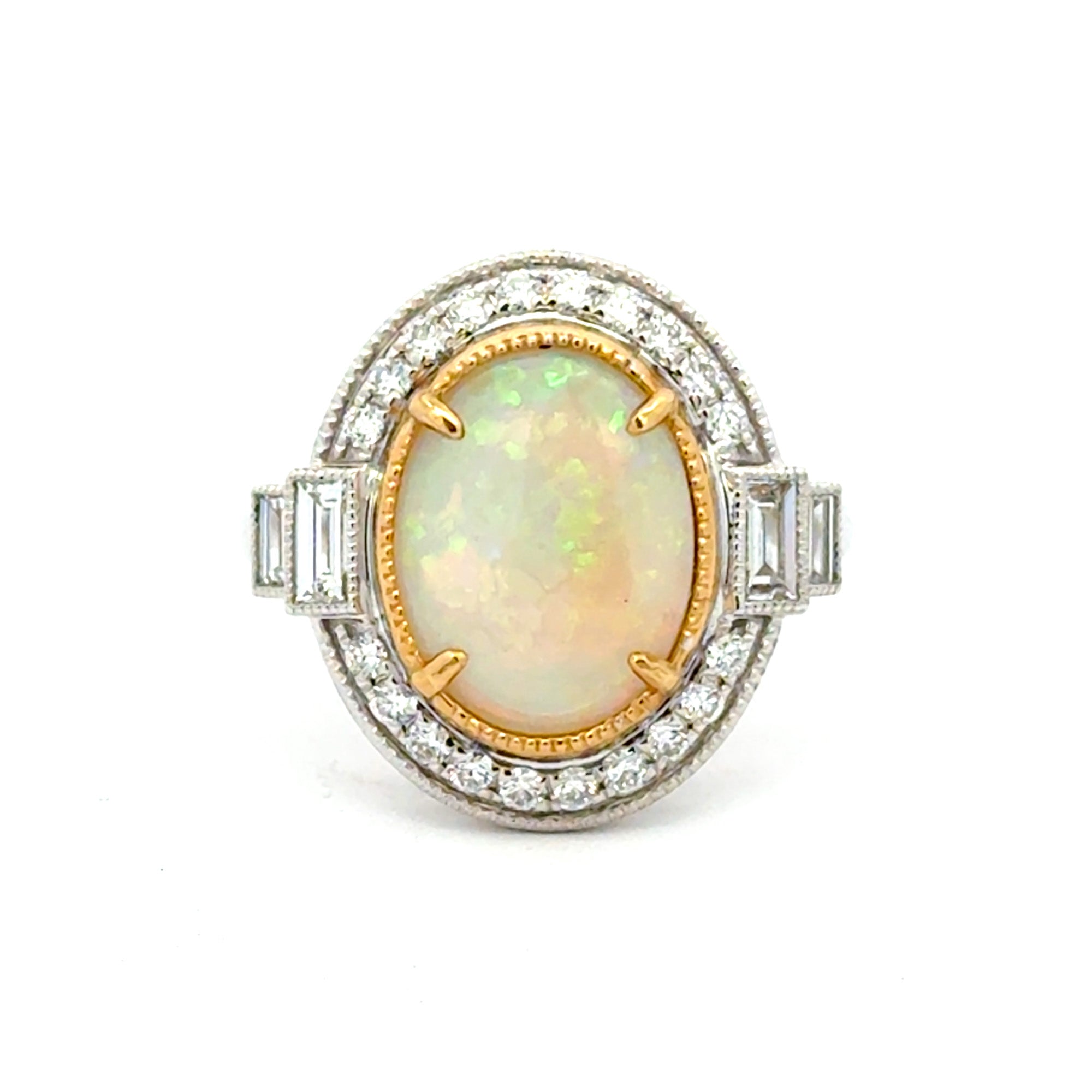 18kt 1.90 ct Oval Opal & .63 ctw Diamond Halo Ring