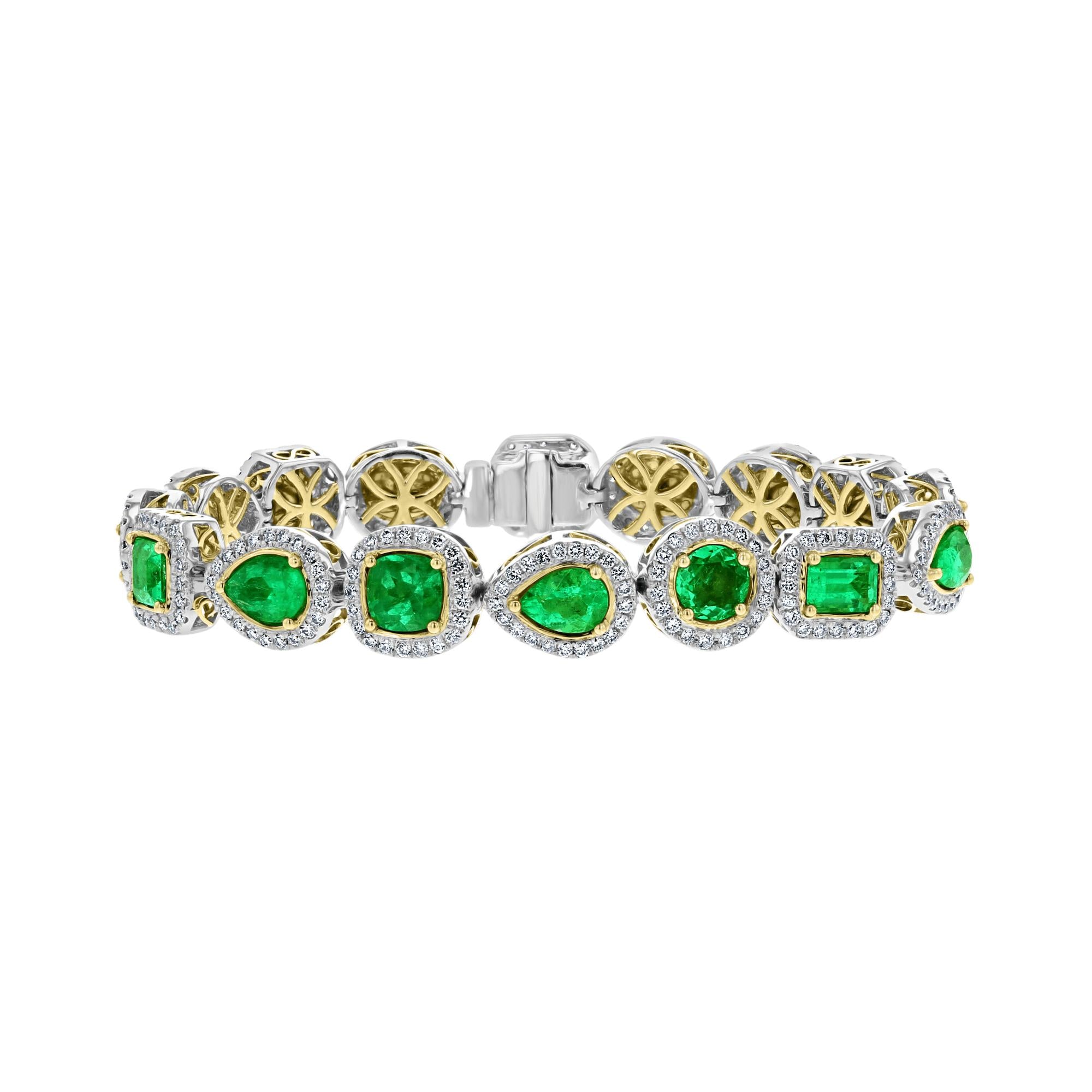 18KT TWO-TONE GOLD 9.73 CTW EMERALD & 2.43 CTW DIAMOND HALO BRACELET