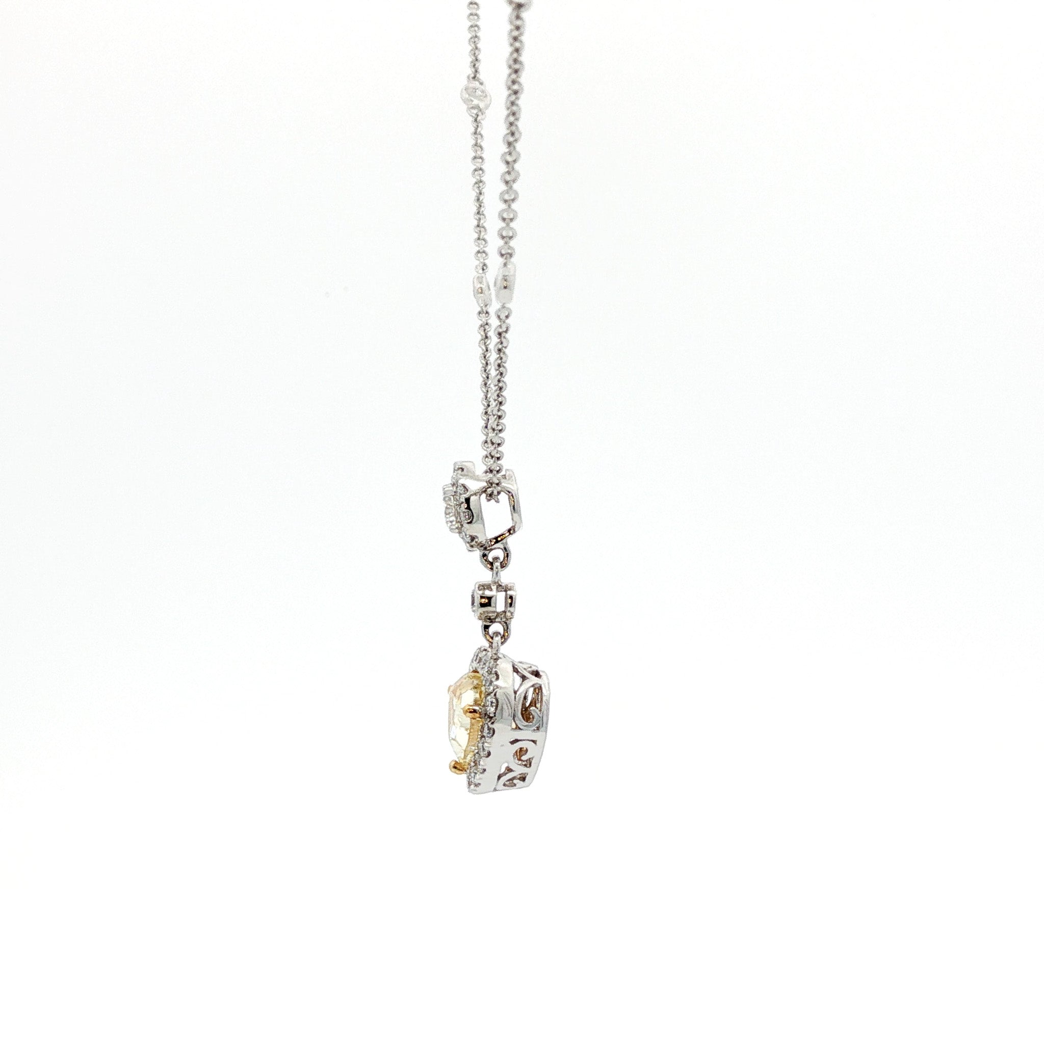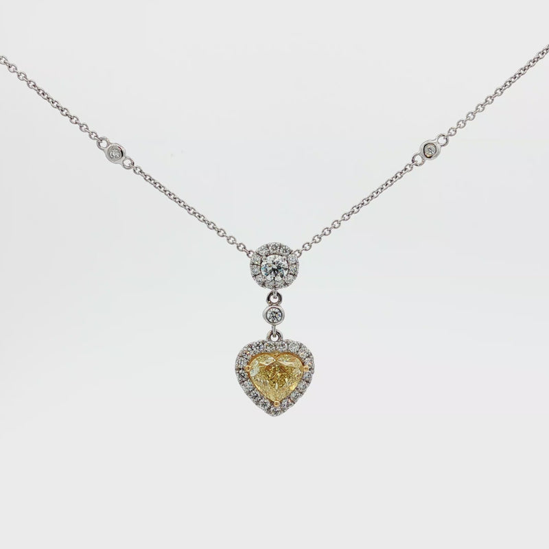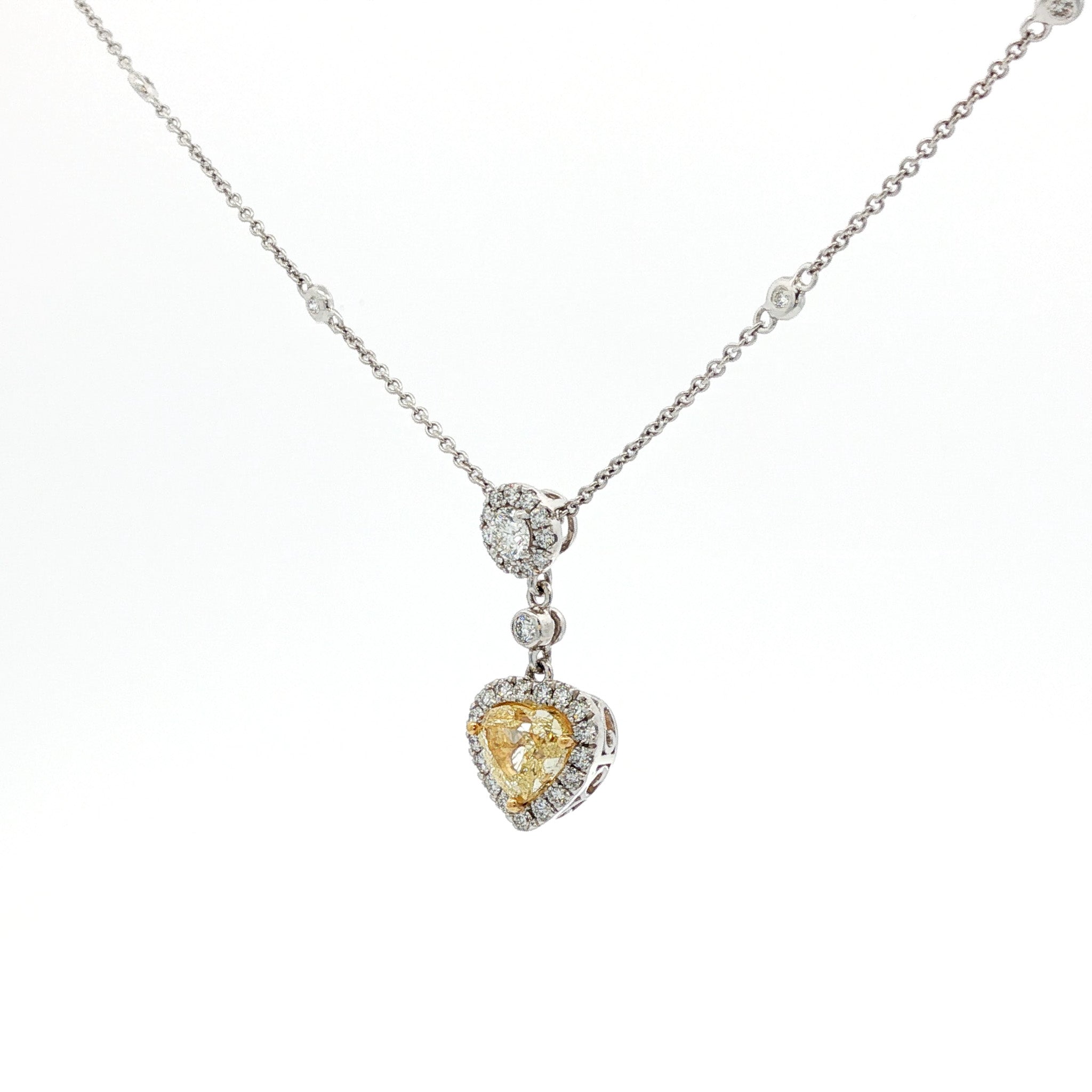 Juleve 18kt White Gold 1.58 ct Fancy Yellow Heart Shape Diamond Halo Necklace