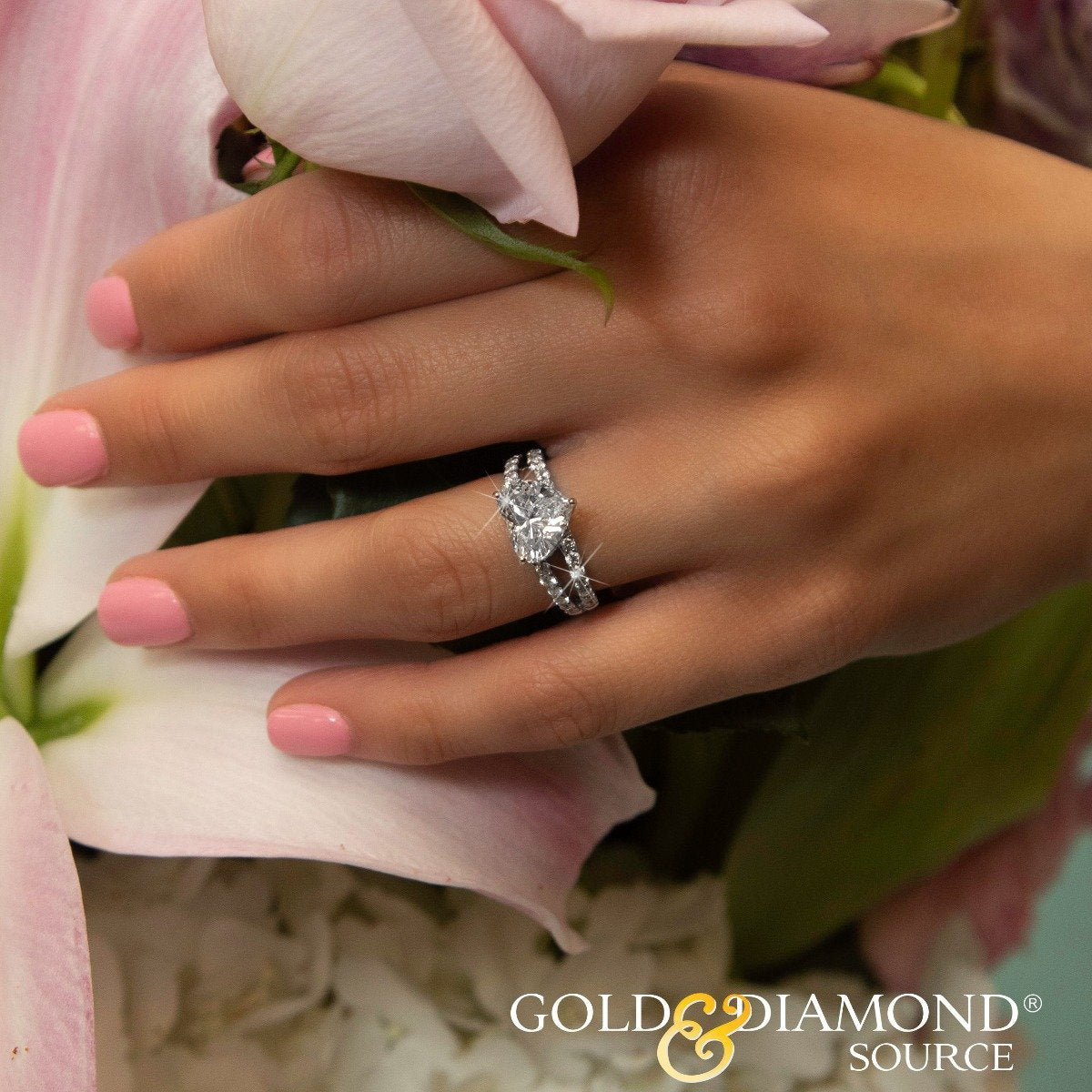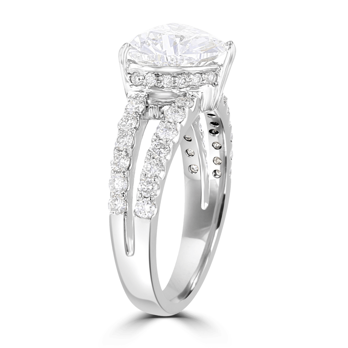 18KT White Gold 3.84 CTW Diamond Split Shank Hidden Halo Ring