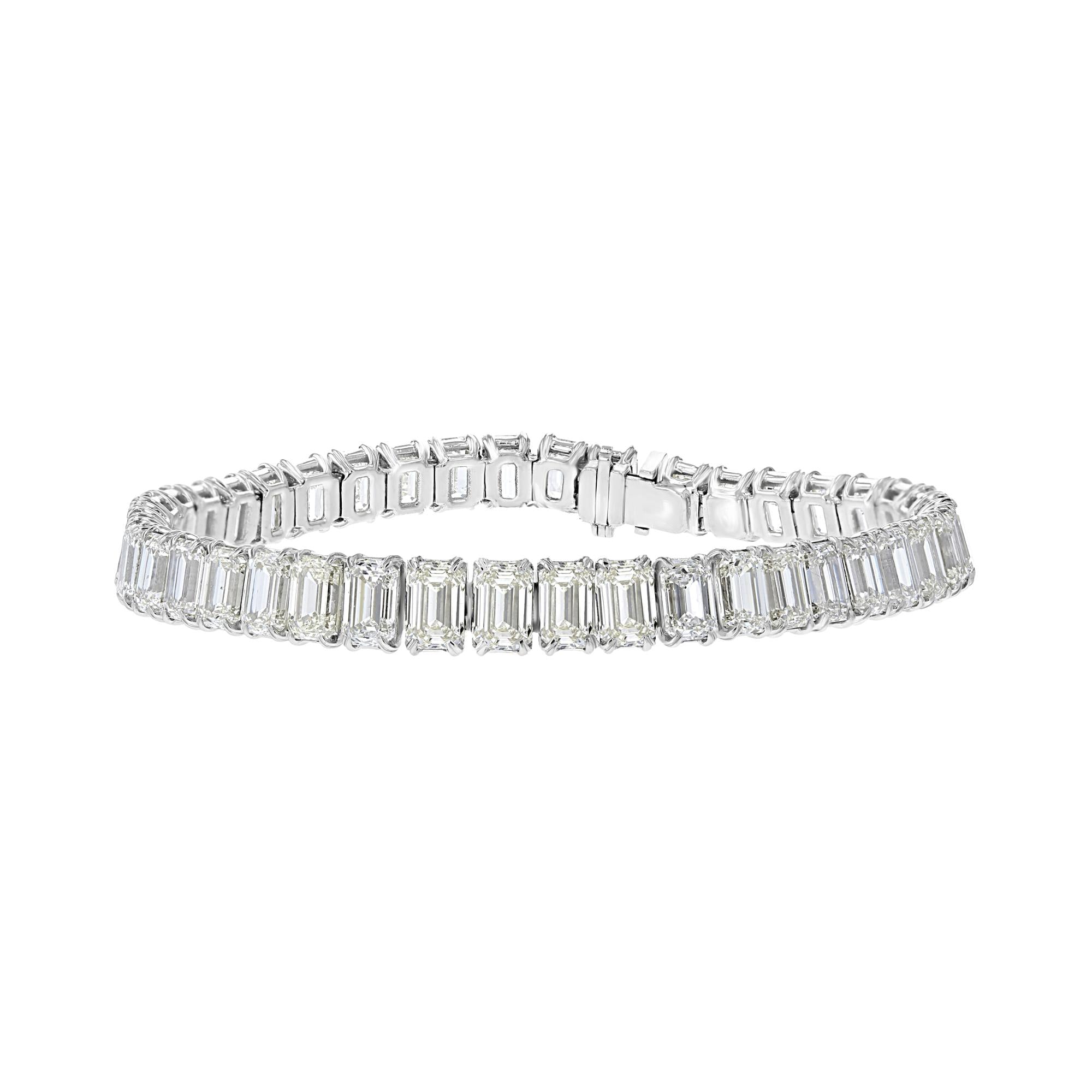 PLATINUM 12.82CTW EMERALD DIAMOND TENNIS BRACELET