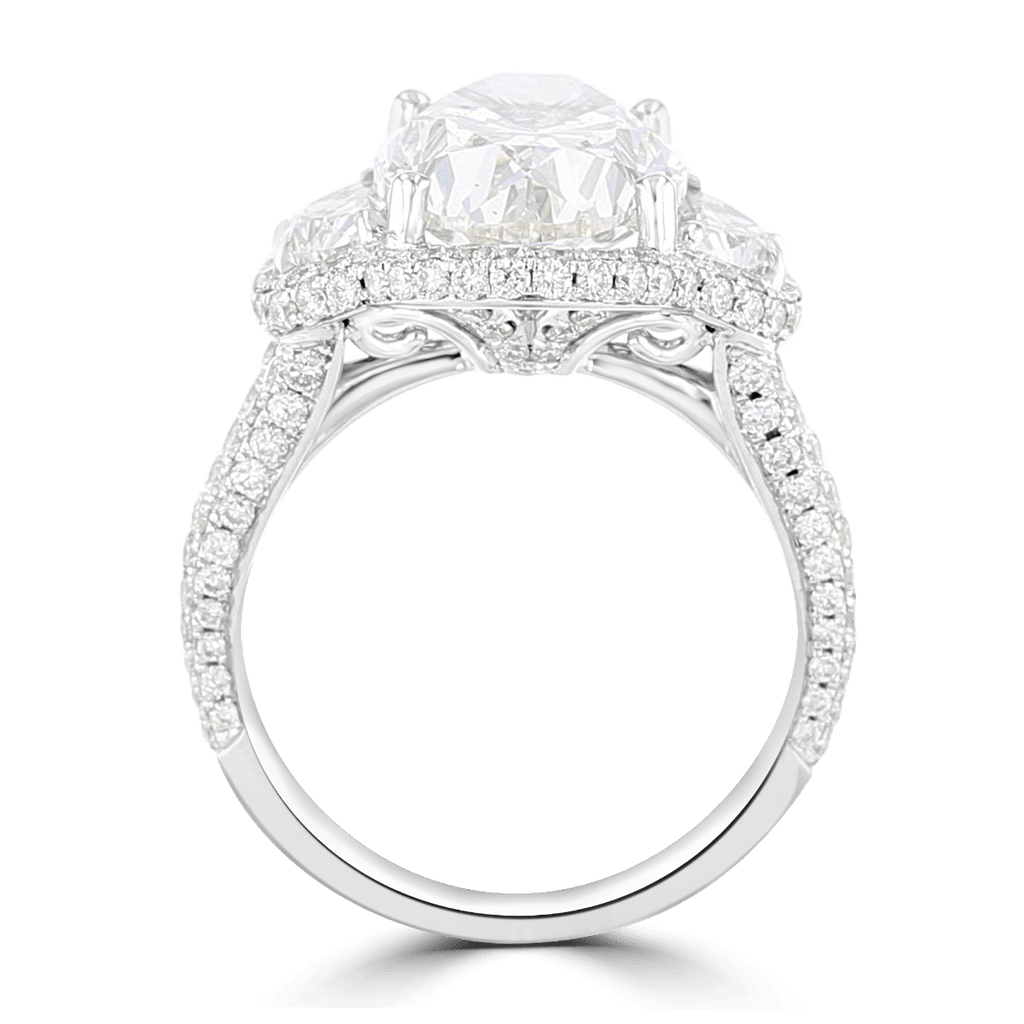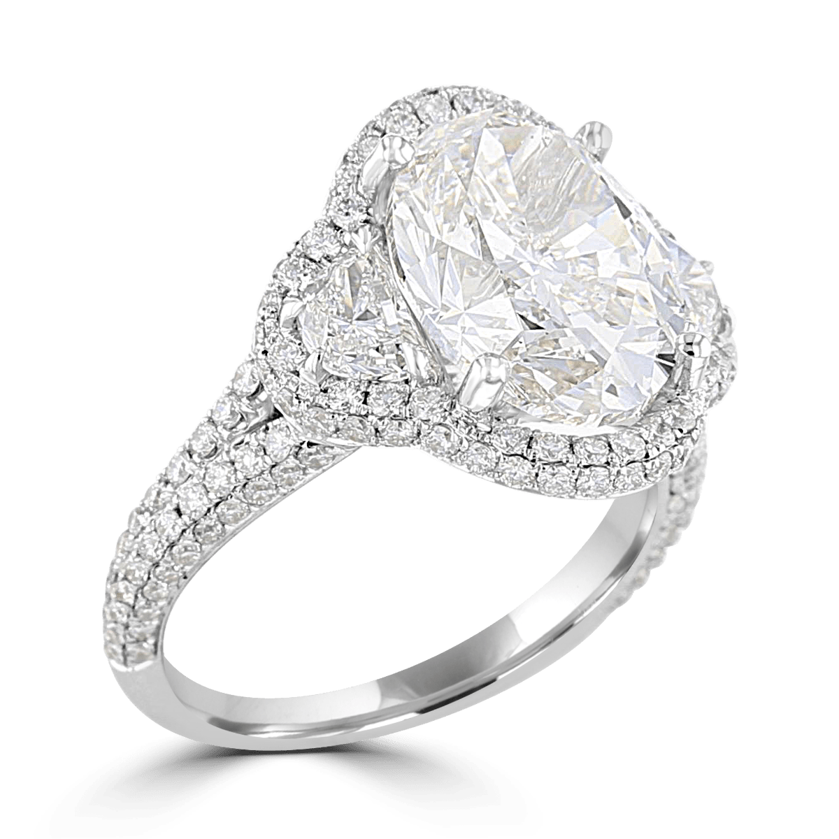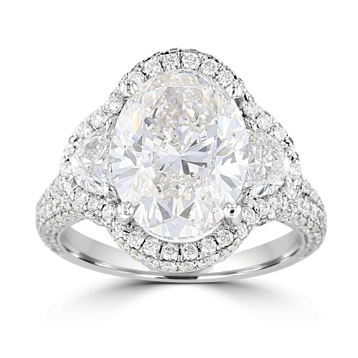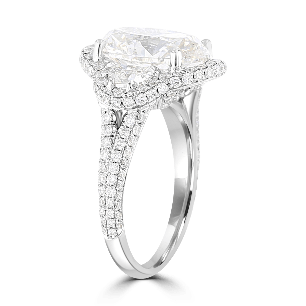 18KT White Gold 6.74 CTW Oval 3-Stone Diamond Halo Ring