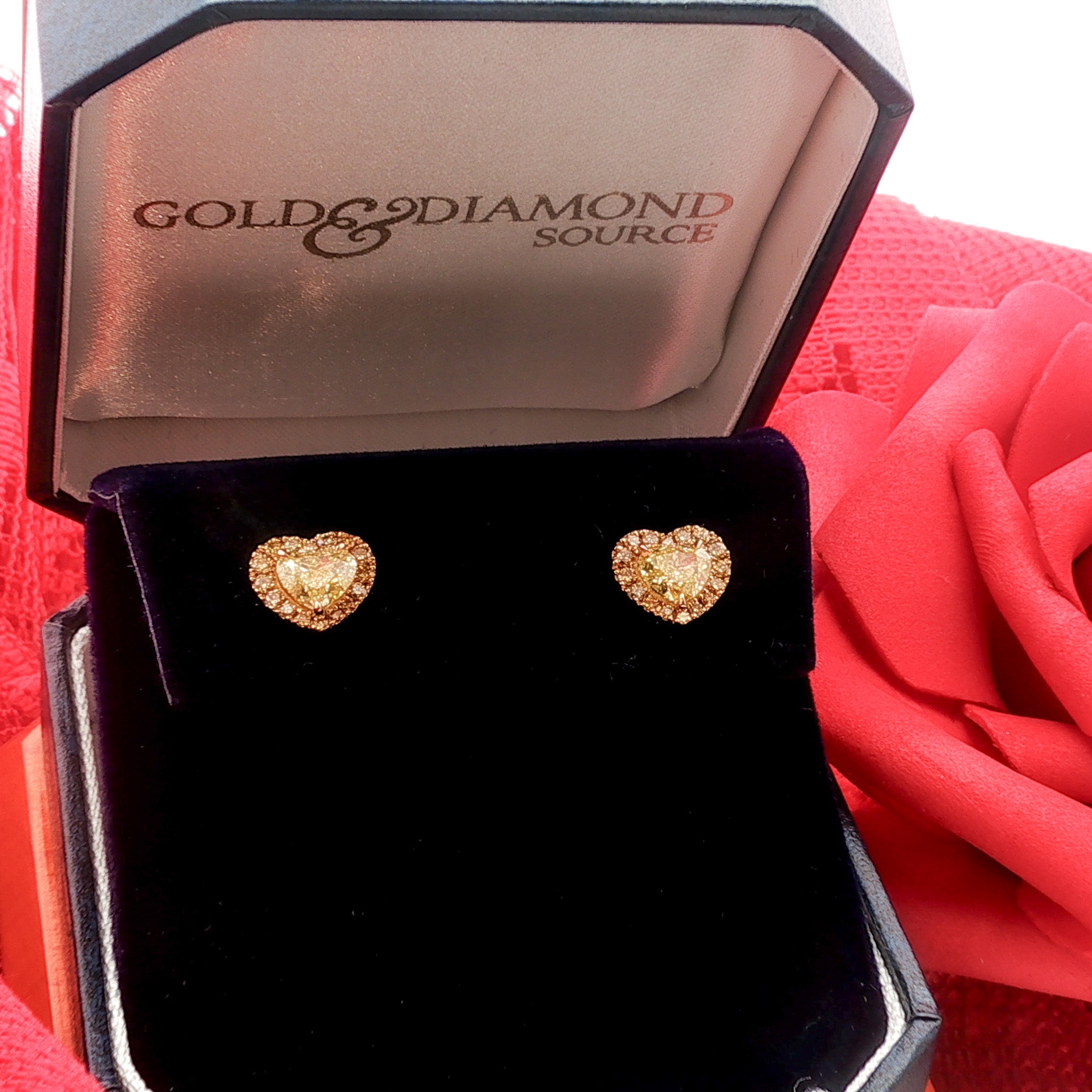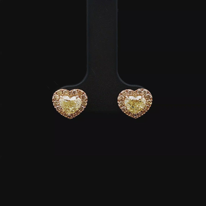 Juleve 18kt Yellow Gold 1.25 ctw Fancy Yellow Heart Shape Diamond Halo Stud Earrings