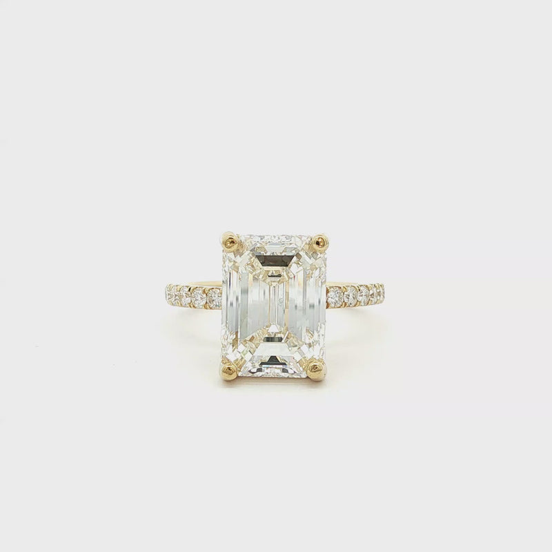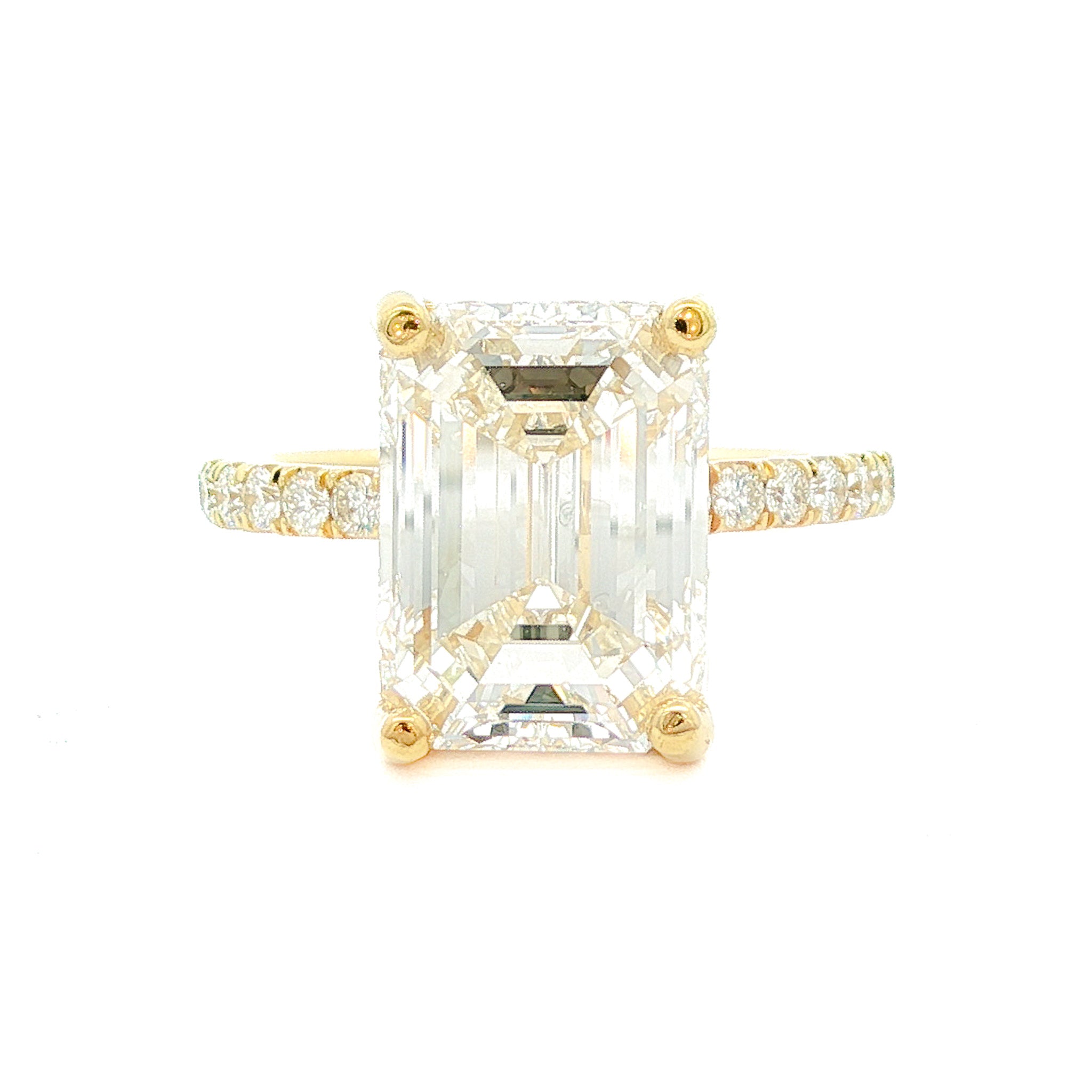18kt Yellow Gold 5.11 ct Emerald-Cut Diamond Engagement Ring with Hidden Halo