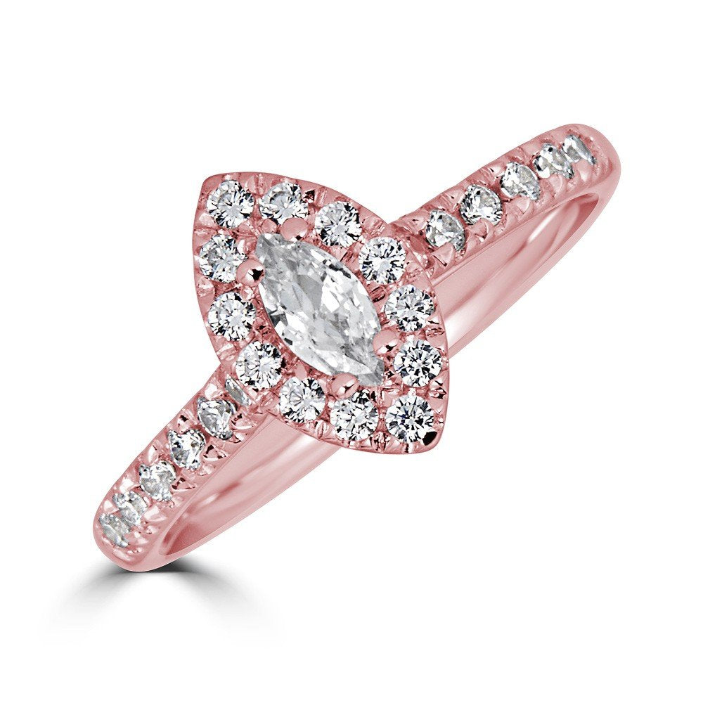 14KT GOLD .50 CTW DIAMOND MARQUISE HALO RING