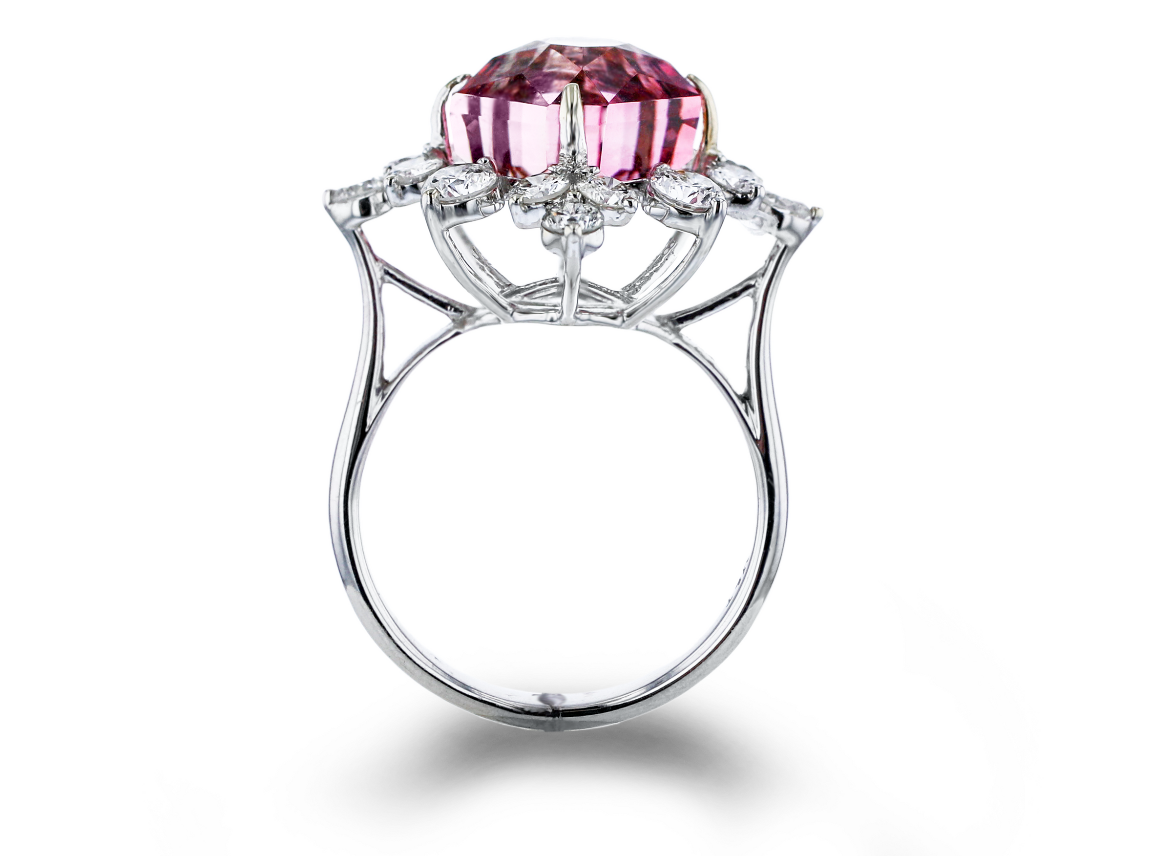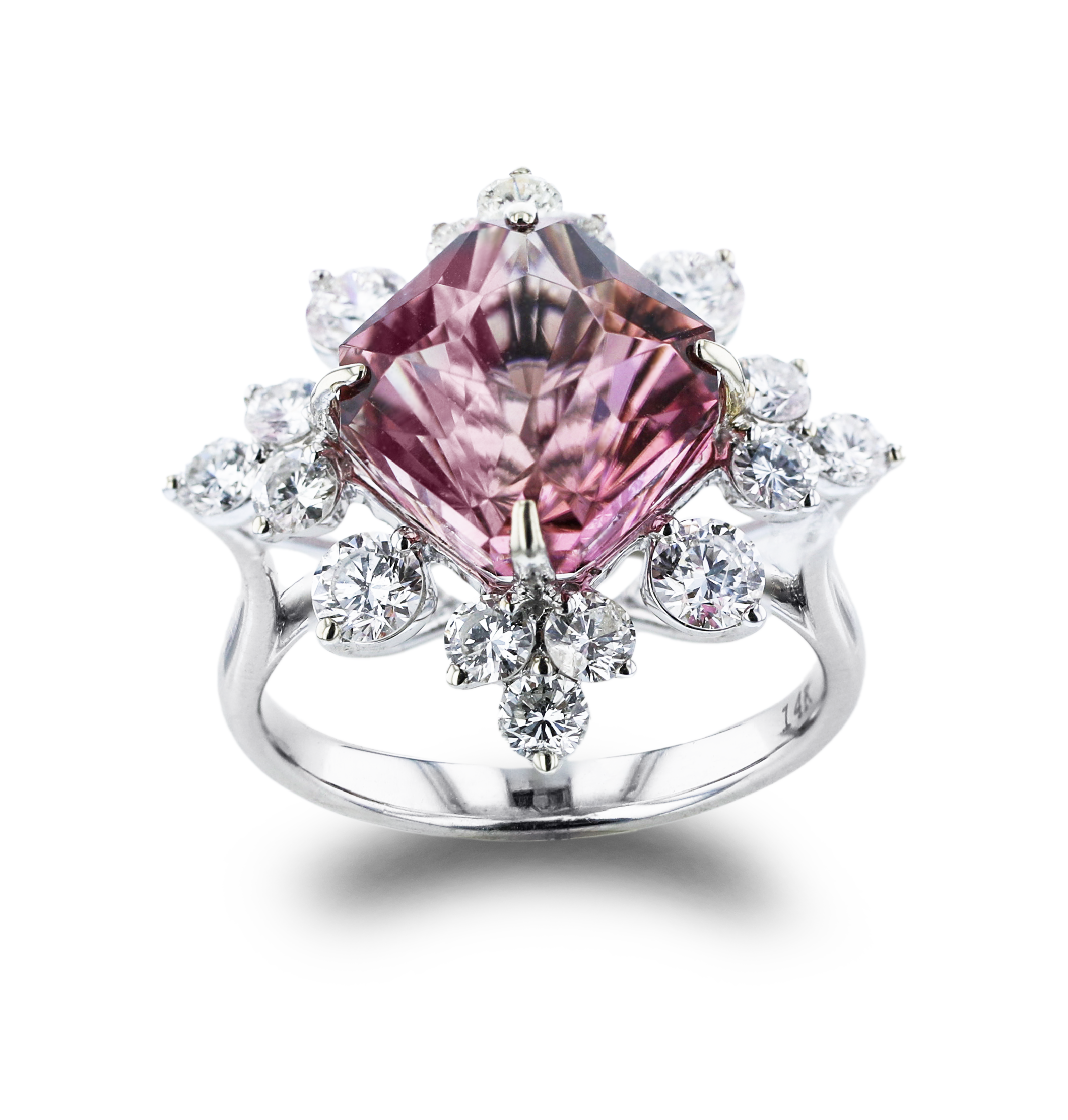 14KT WHITE GOLD 6.13CT TOURMALINE & 1.34CTW DIAMOND RING