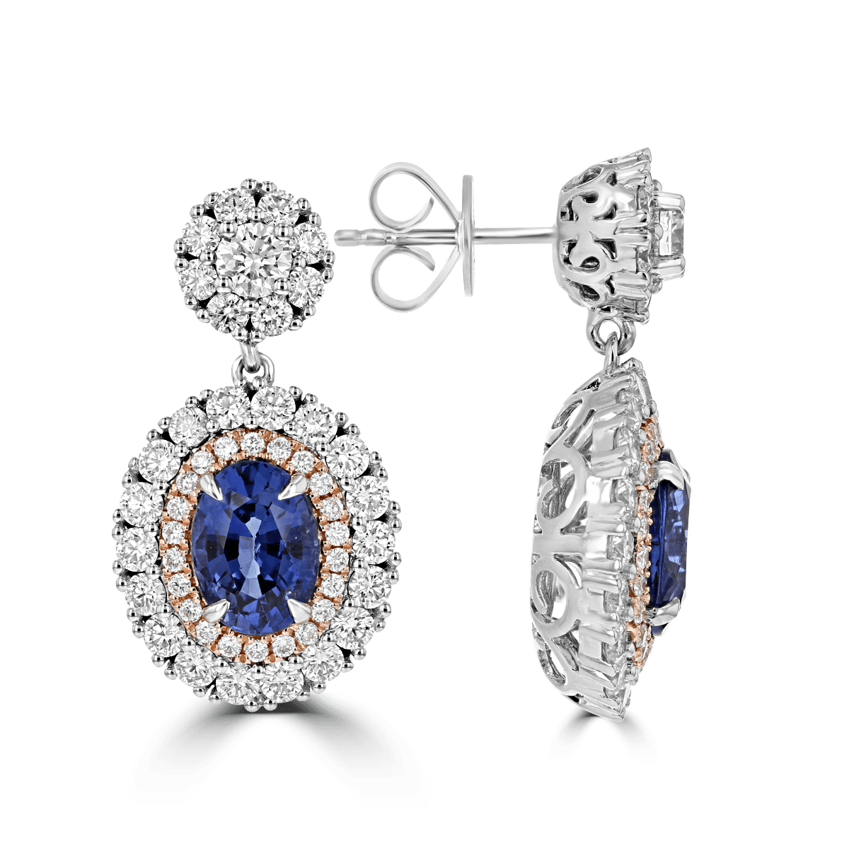 JULEVE 18KT 4.49 CTW SAPPHIRE & 3.35 CTW DIAMOND HALO EARRINGS