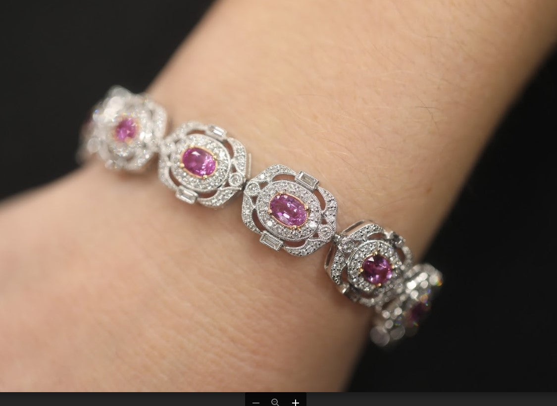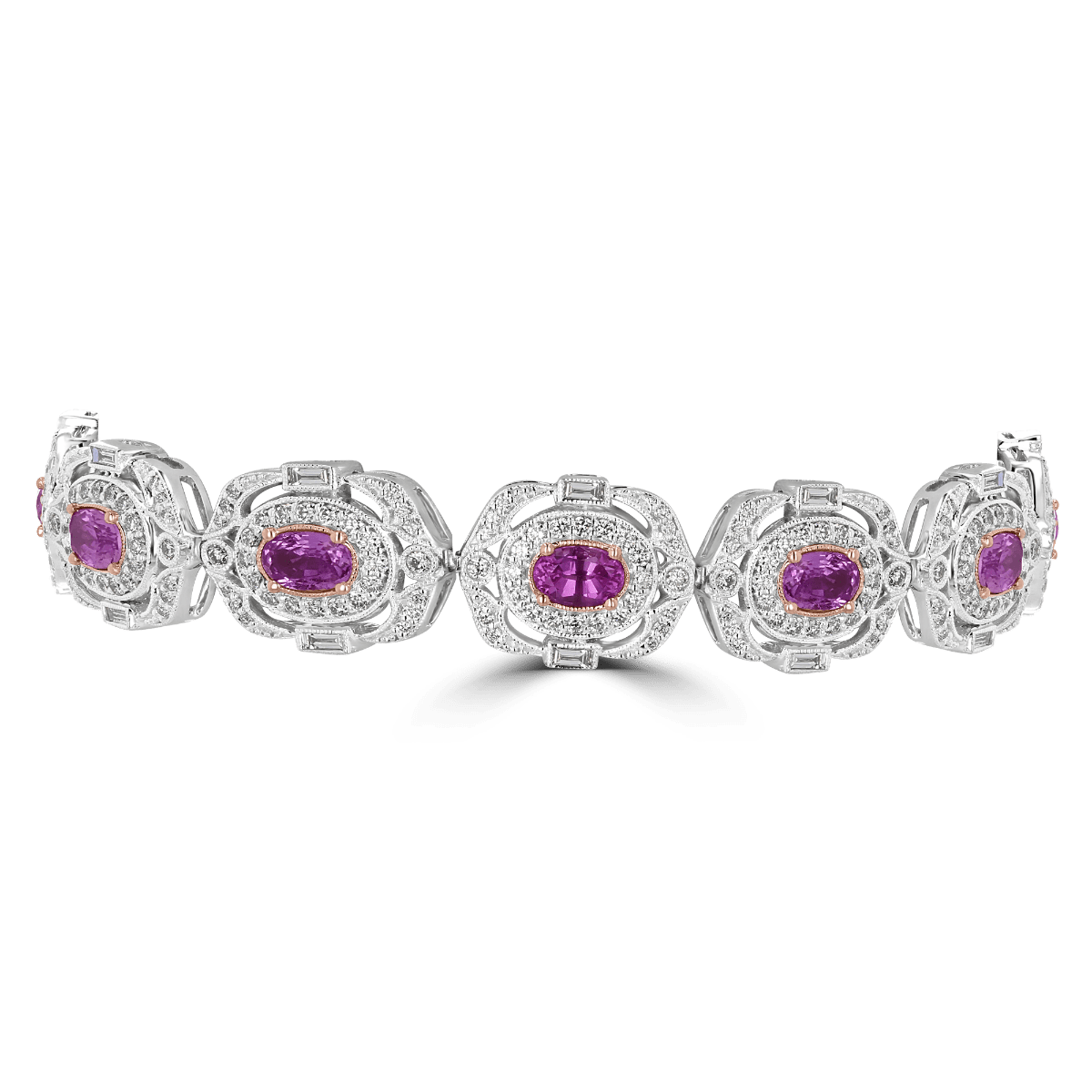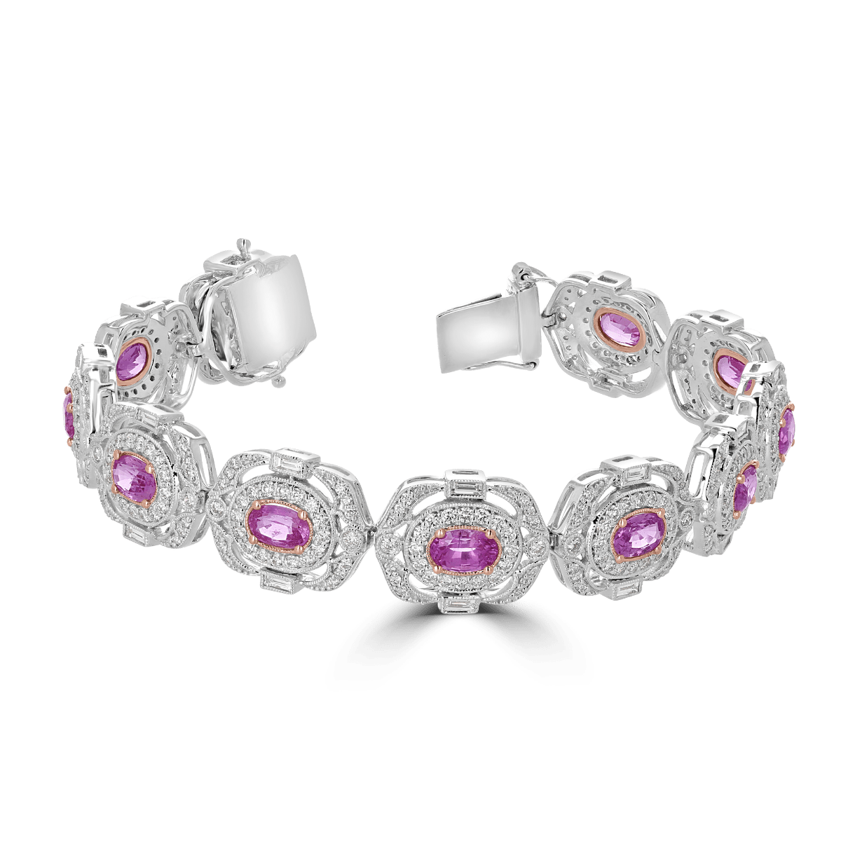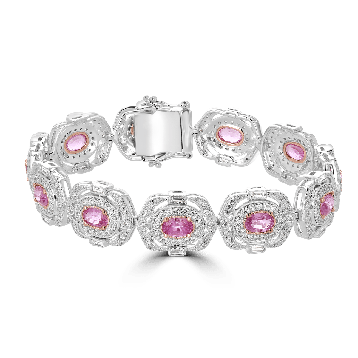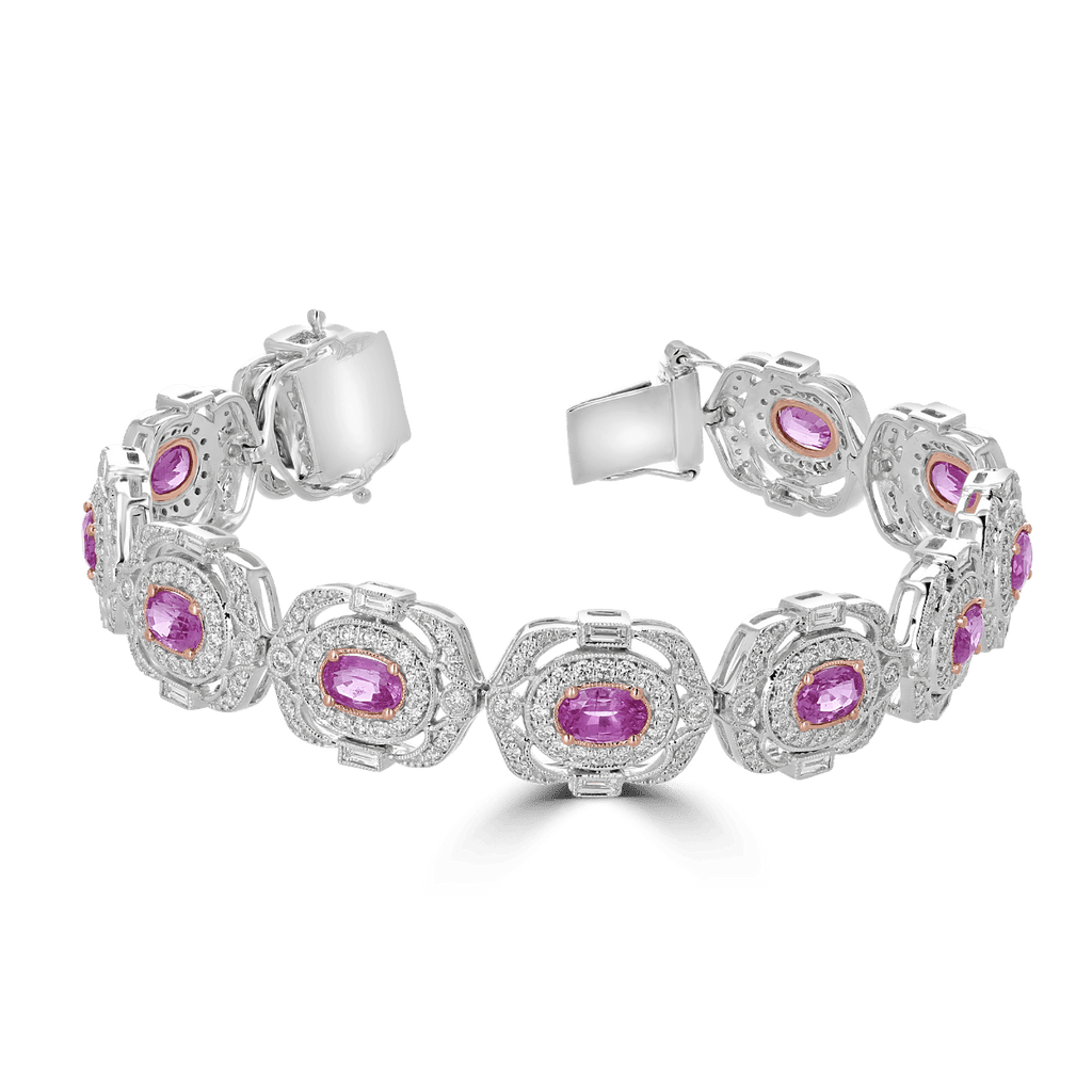 JULEVE 18KT 7.08 CARAT PINK SAPPHIRE & 4.04 CARAT DIAMOND HALO BRACELET