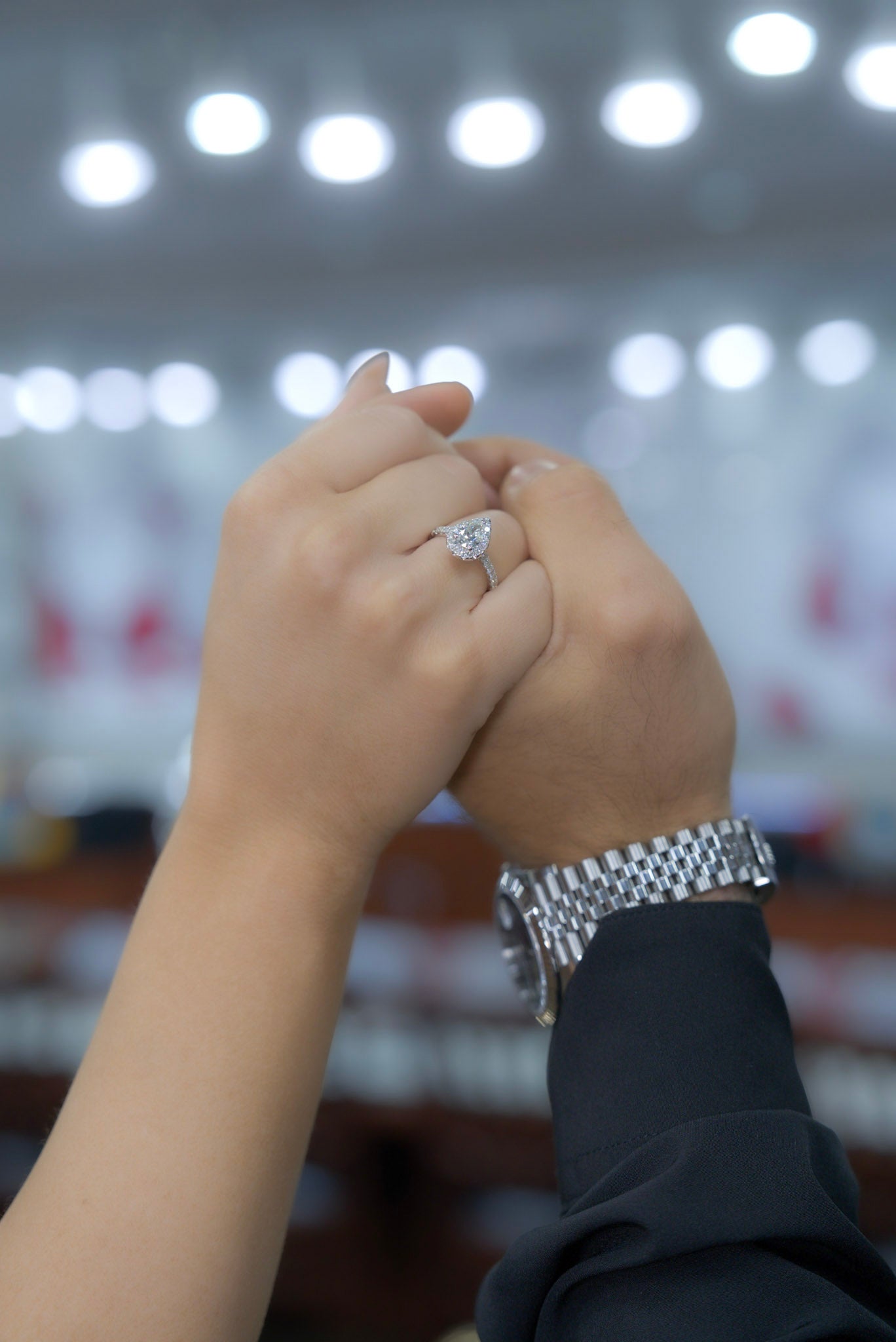 18KT GOLD 1.75 CTW DIAMOND PEAR HALO RING