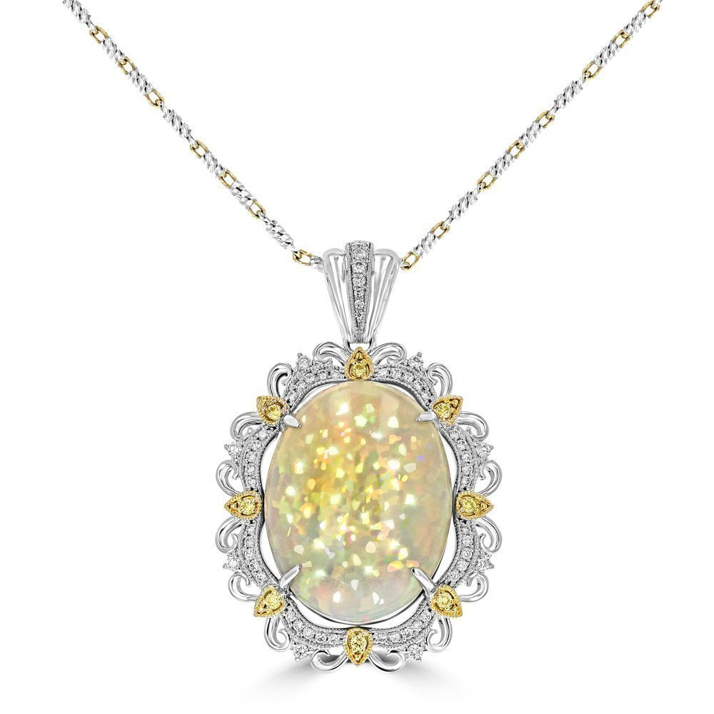 JULEVE 18KT TWO TONE ETHIOPIAN OPAL & DIAMOND NECKLACE