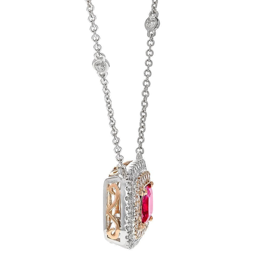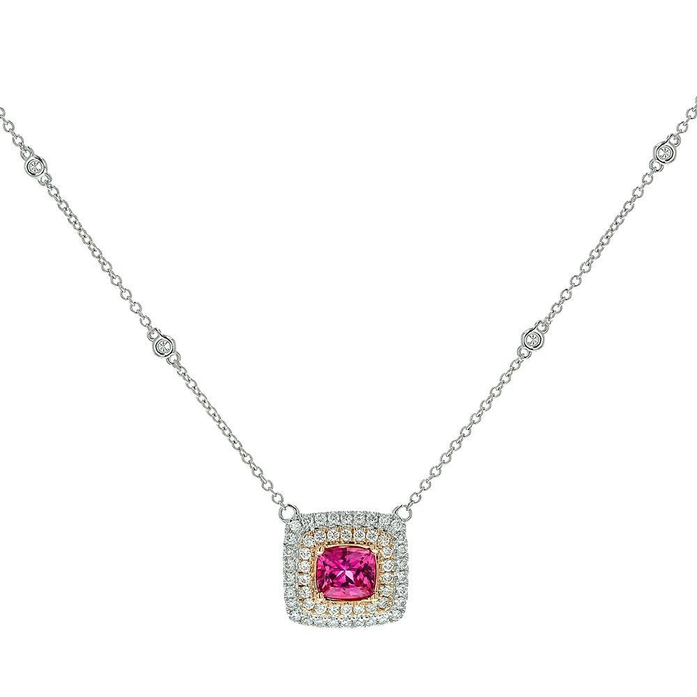 JULEVE 18KT TWO TONE PINK SAPPHIRE & DIAMOND NECKLACE