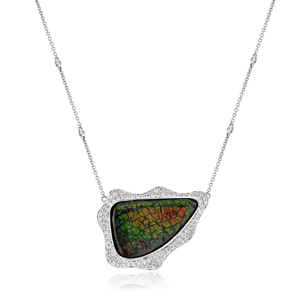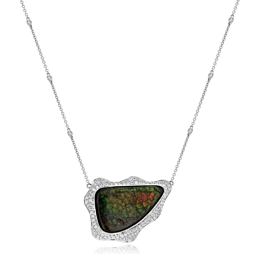 Juleve 18KT White Gold Ammolite & Diamond Halo Pendant