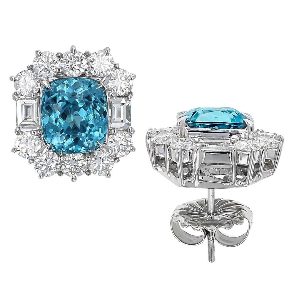 JULEVE 18KT WHITE GOLD BLUE ZIRCON & DIAMOND EARRINGS