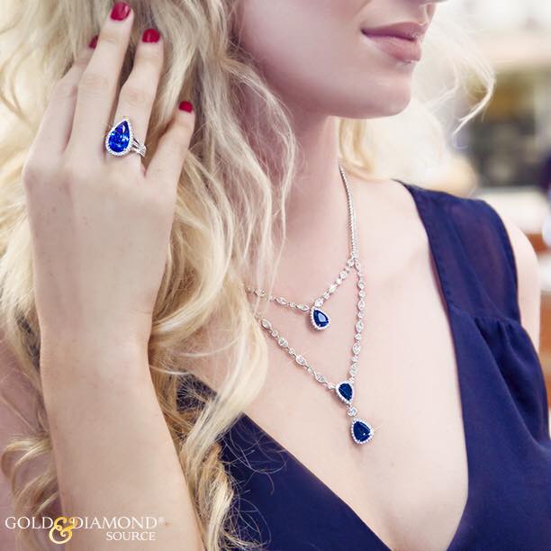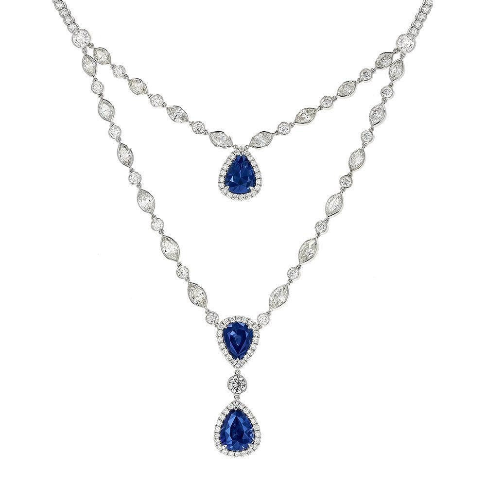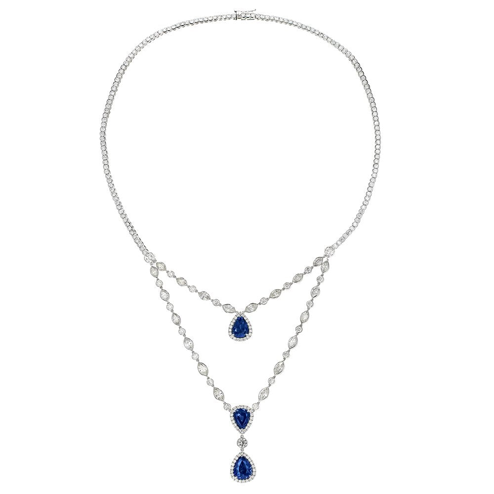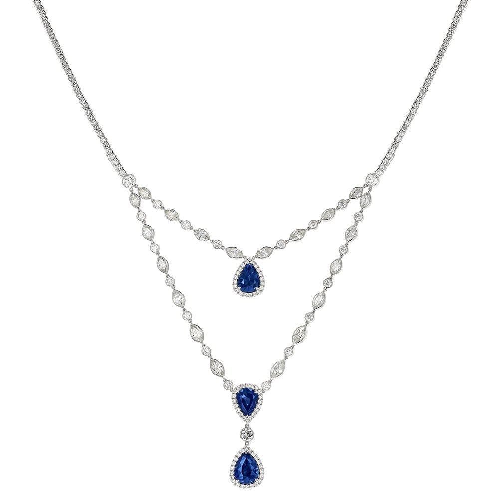 JULEVE 18KT WHITE GOLD PEAR SHAPE SAPPHIRE & DIAMOND NECKLACE- SOLD