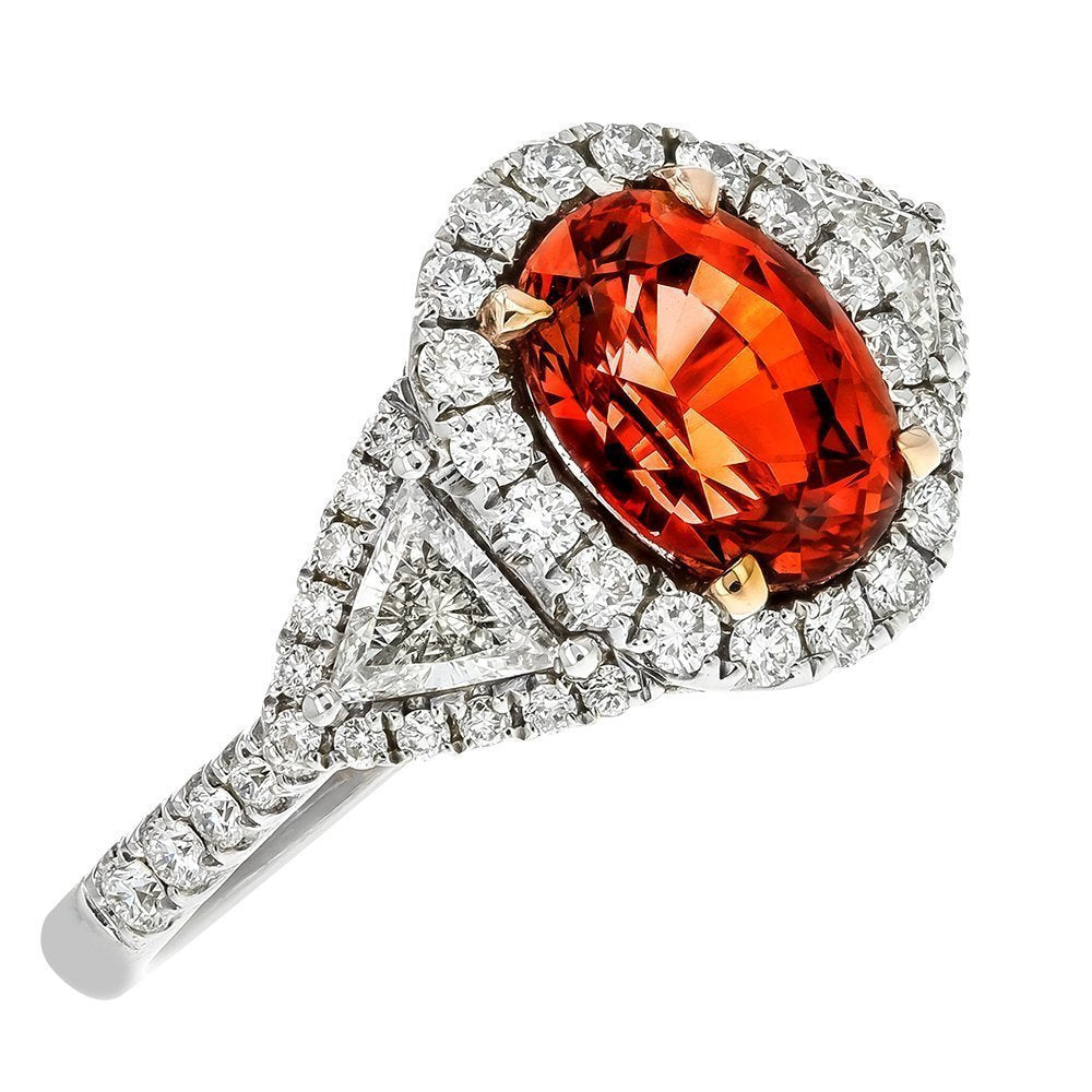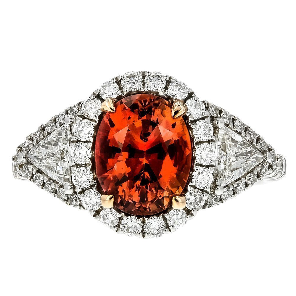 JULEVE 2.49 CT REDDISH ORANGE SAPPHIRE & .91 CTW DIAMOND RING