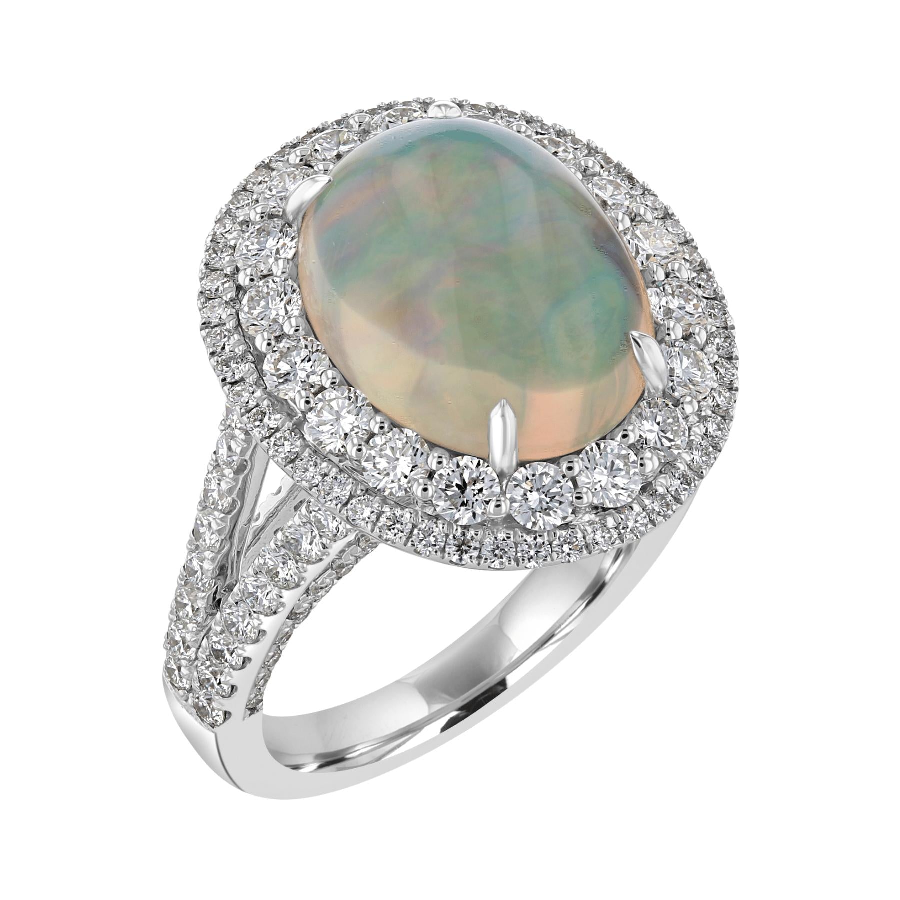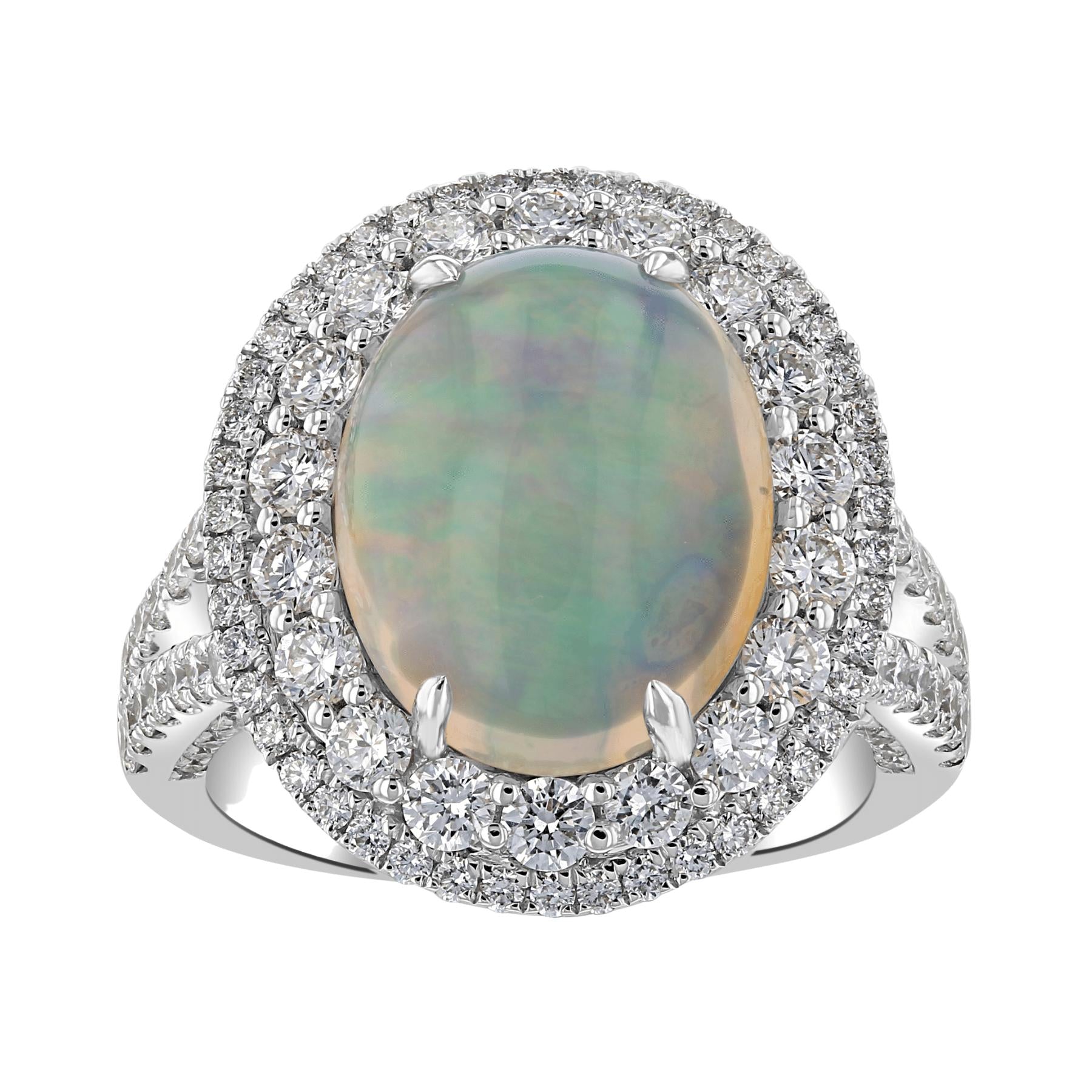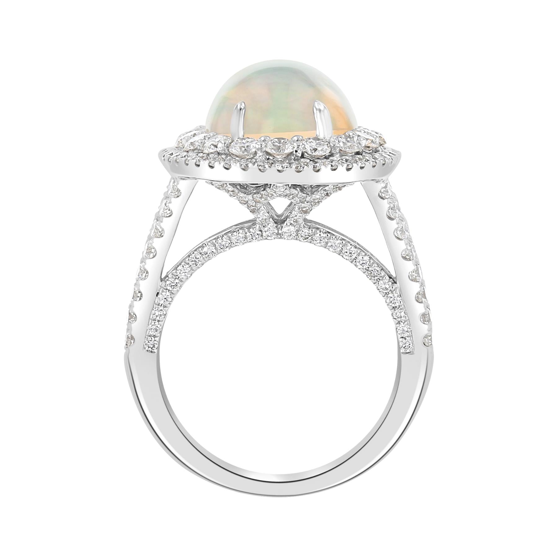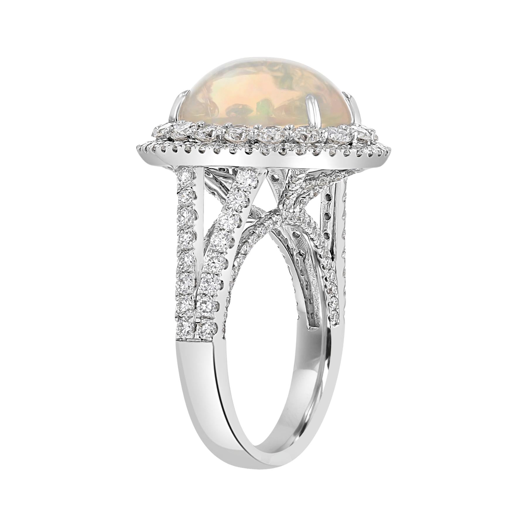JULEVE 5.37 CT FIRE OPAL & 2.11 CTW DIAMOND DOUBLE HALO RING